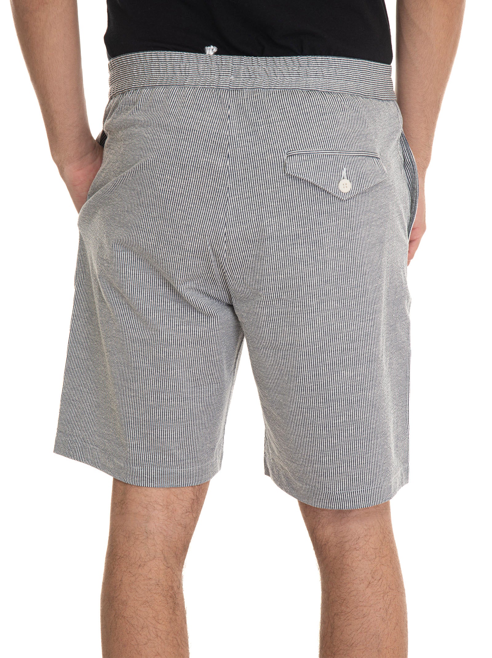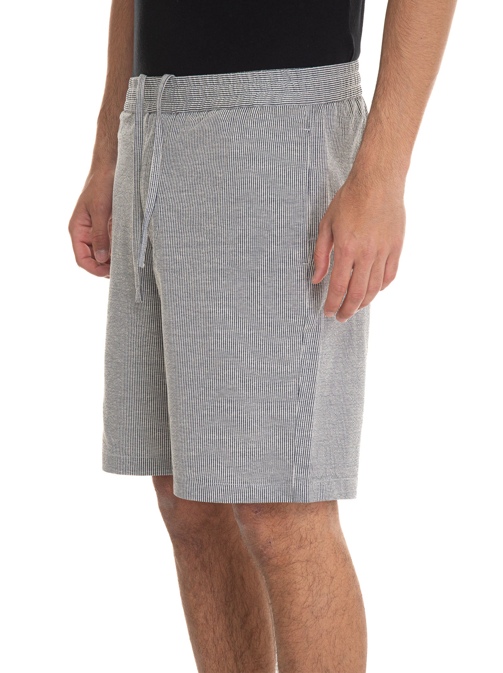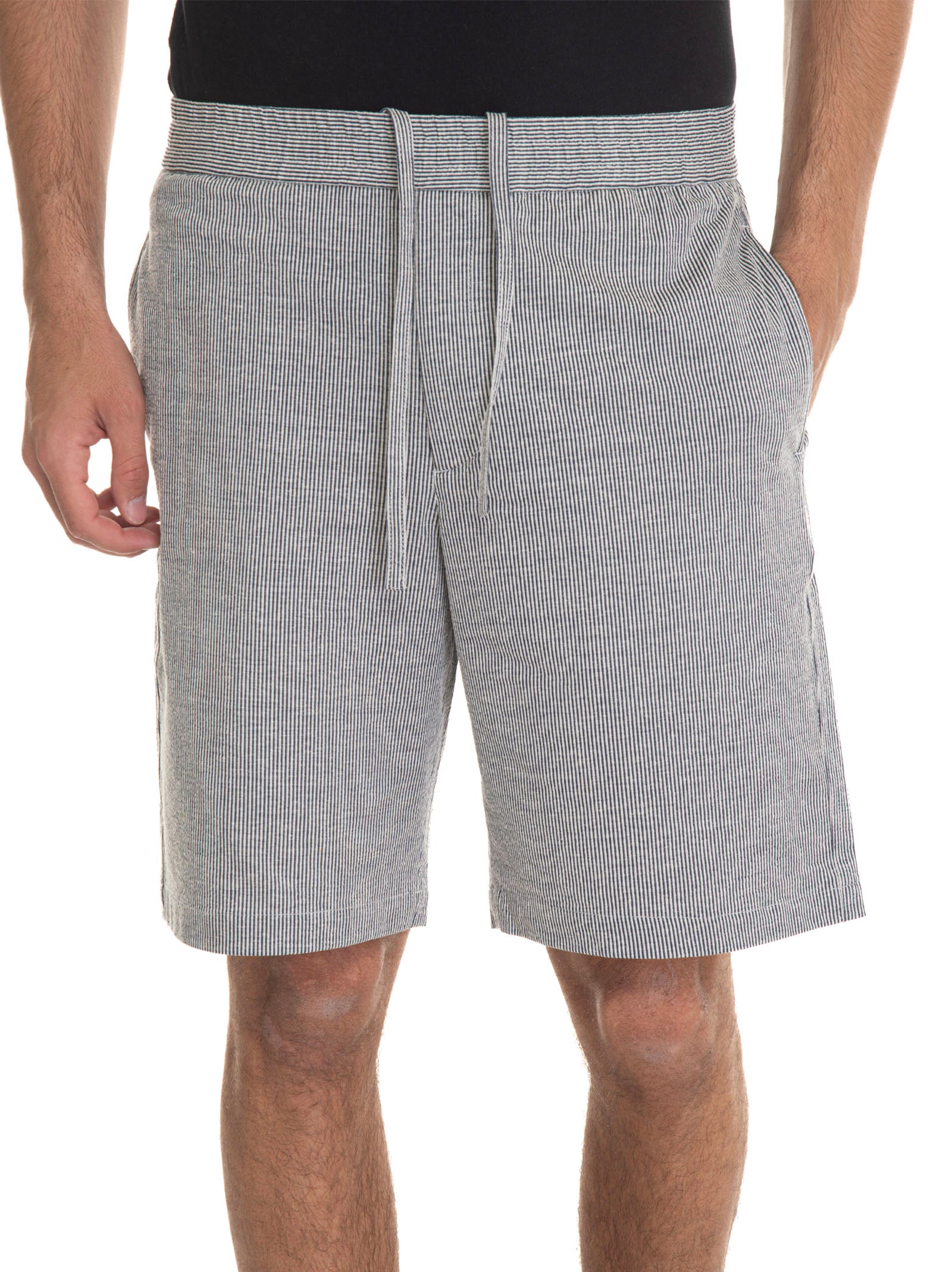 Bermuda Hindustrie SHORTS-SEERSACHER, spring at the waist, jogging model, striped pattern, 2 diagonal pockets, drawstring at the waist, embossed fabric, composition: 46% cotton, 38% polyester, 16% linen, line: HINDUSTRIE.