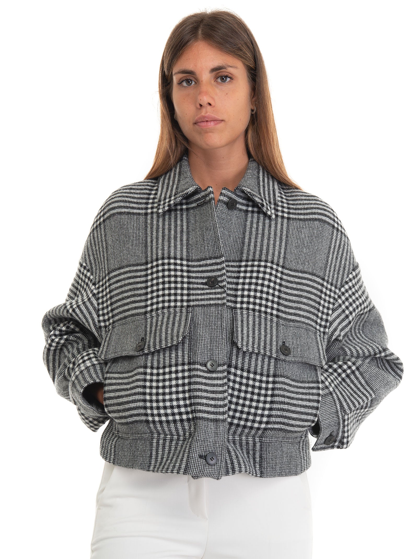 Weekend Max Mara BATUN short caban, wales pattern, button closure, two front pockets, shirt collar, lined, regular fit, composition: 90% virgin wool, 10% polyamide, line: WEEKEND MAX MARA.