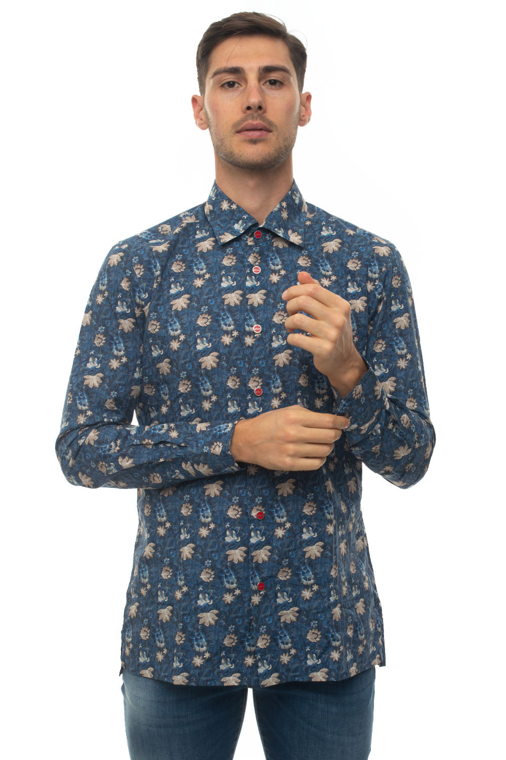 Casual shirt, floral print, snap buttons, made in Italy, regular fit, composition: 100% cotton, line: KITON.