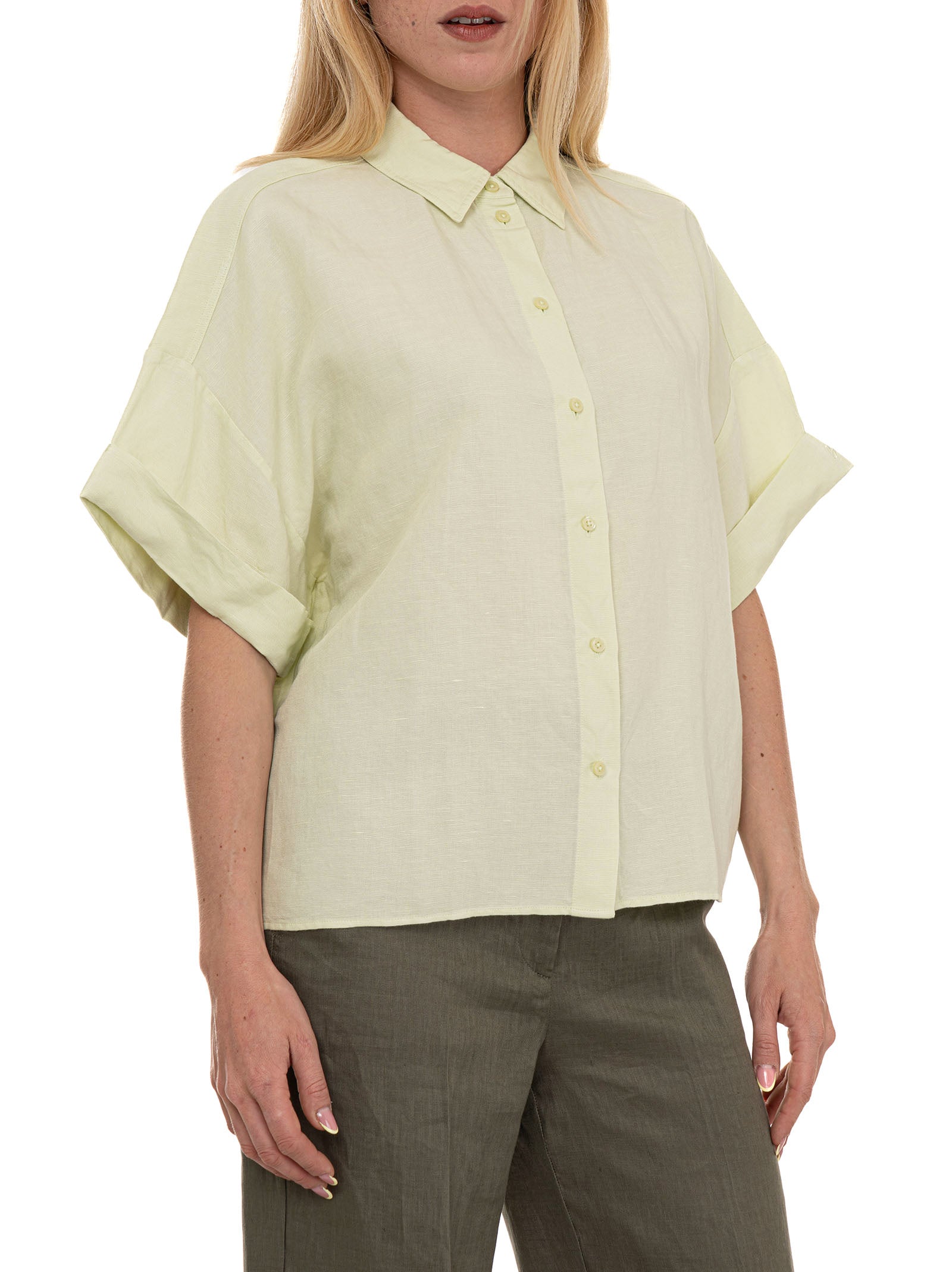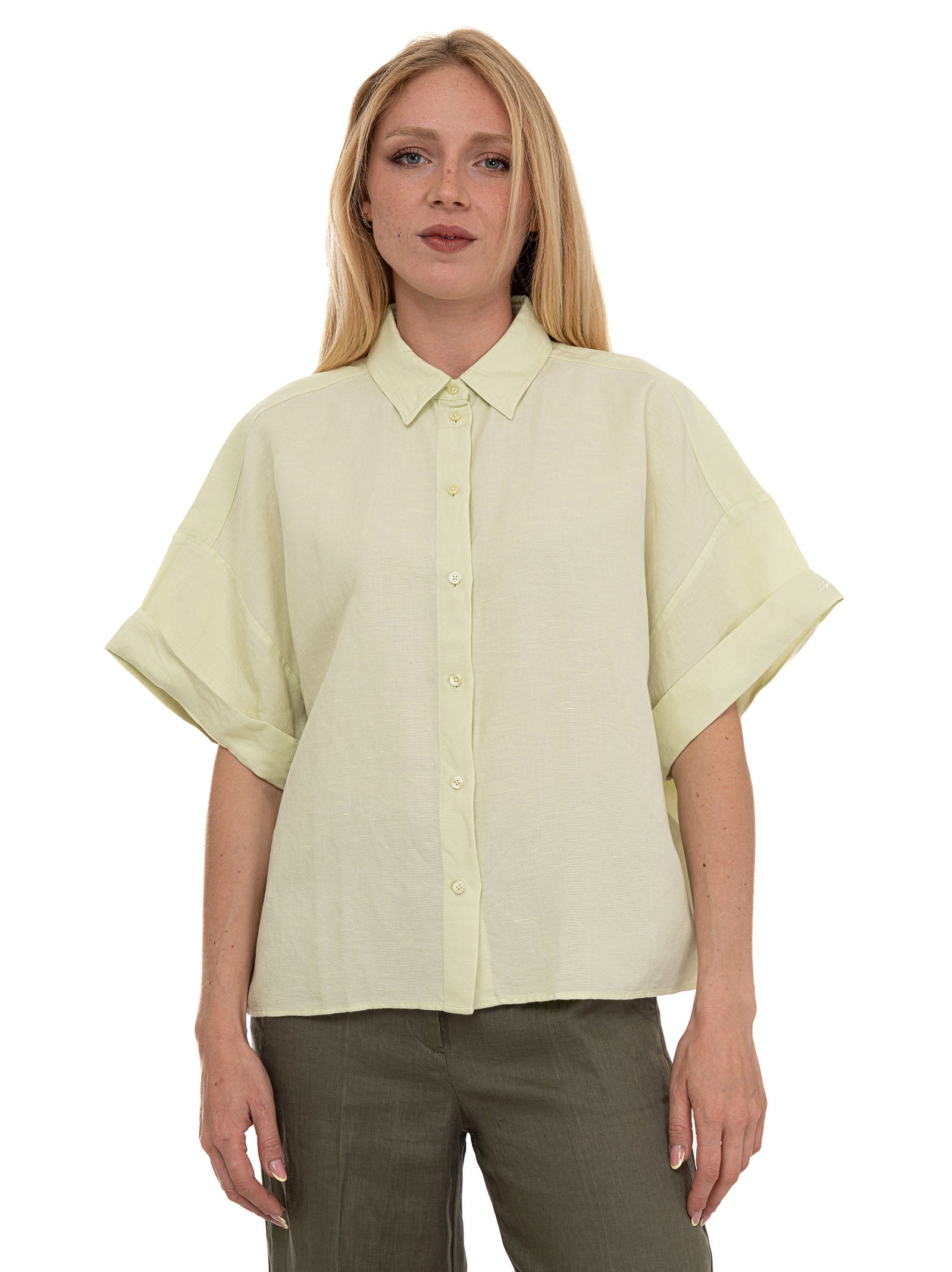Camicia in lino BOSS BISENAS, mezza manica, modello boxy, fondo stondato, composizione: 53% lino, 47% viscosa, linea: BOSS.