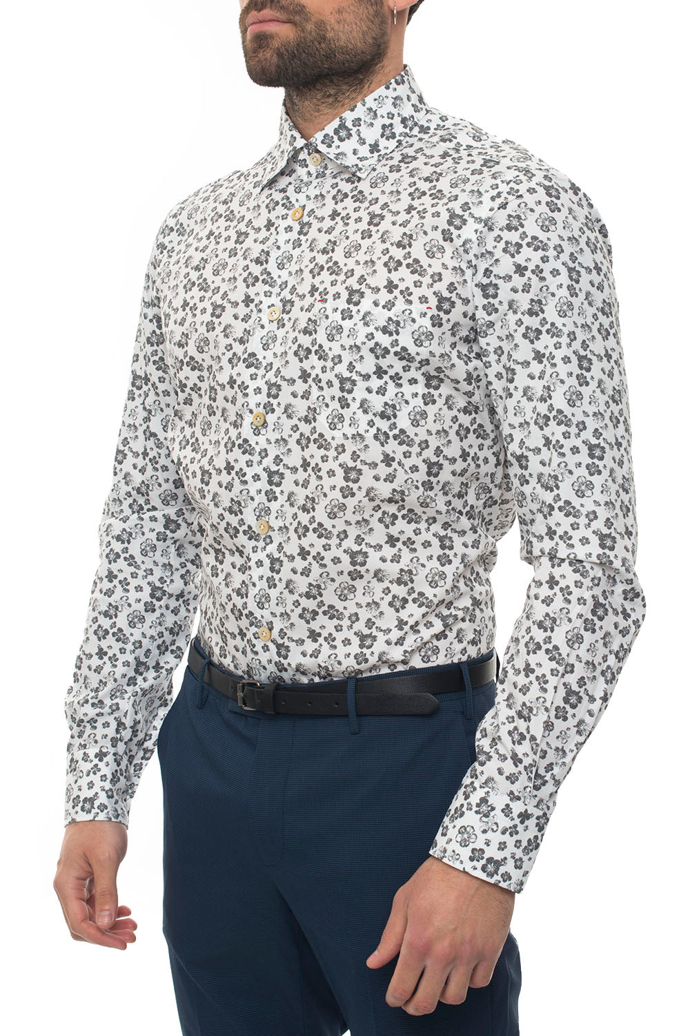 Long sleeve shirt, flower pattern, chest pocket, mother of pearl button, hand made, made in Italy, regular fit, composition: 100% cotton, line: KITON.