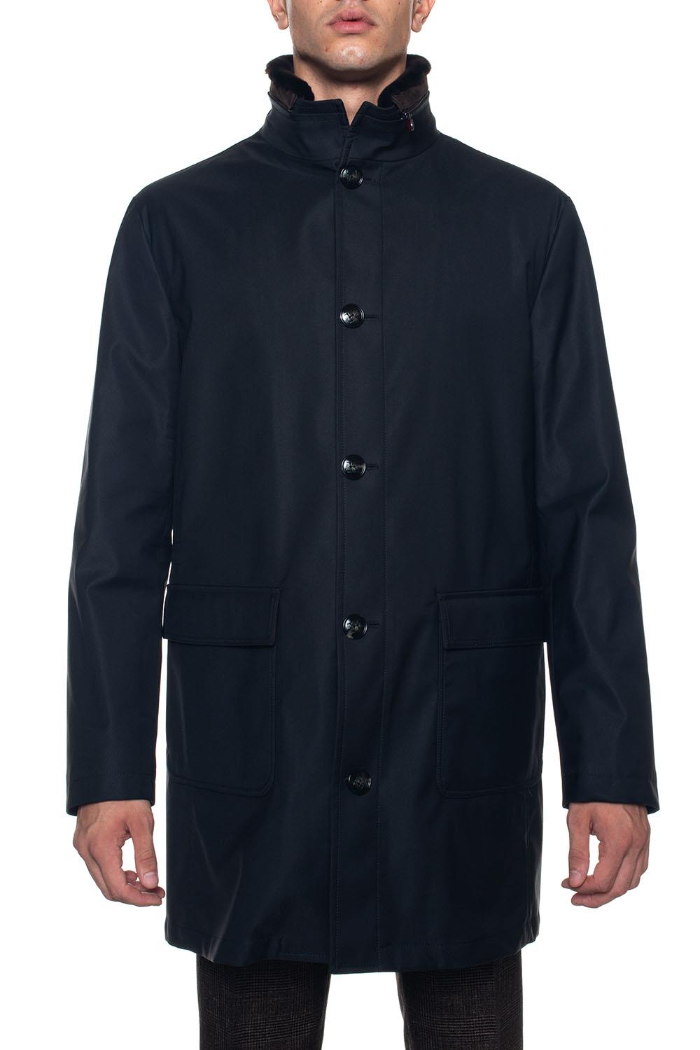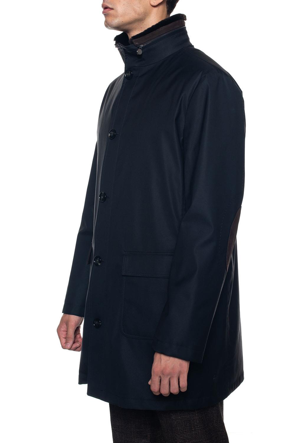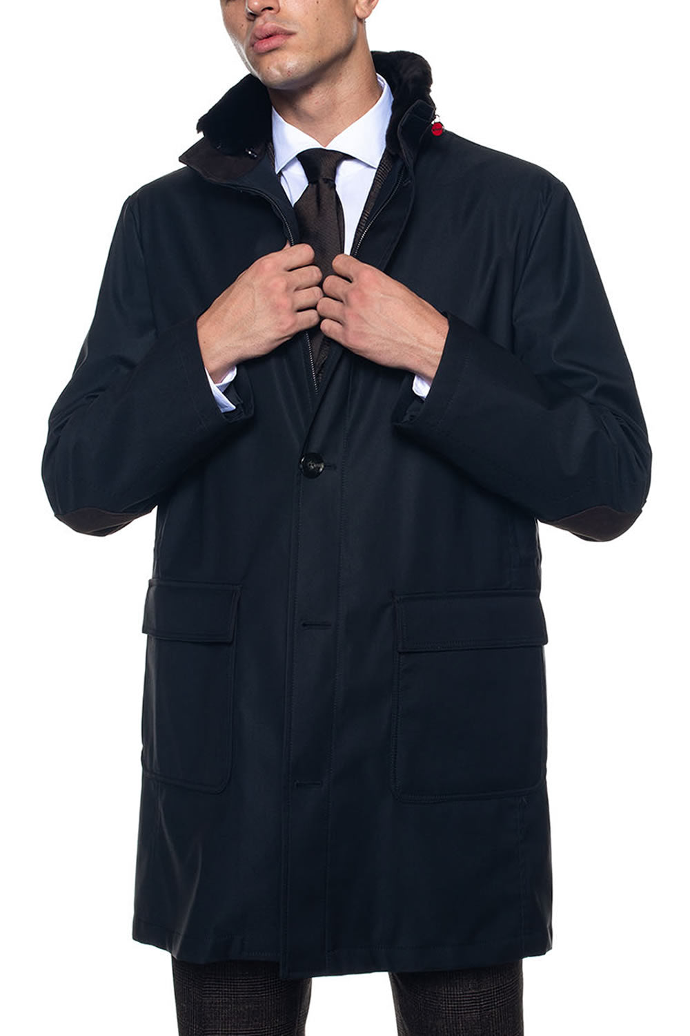 Jacket, beaver collar, zip closure with double slider + buttons, elbow patches in suede, flap pockets, internal padding detachable with zip, regular fit, composition: 53% wool, 41% polyamide, 6% silk, internal silk: 100 % cupro, line: KITON.