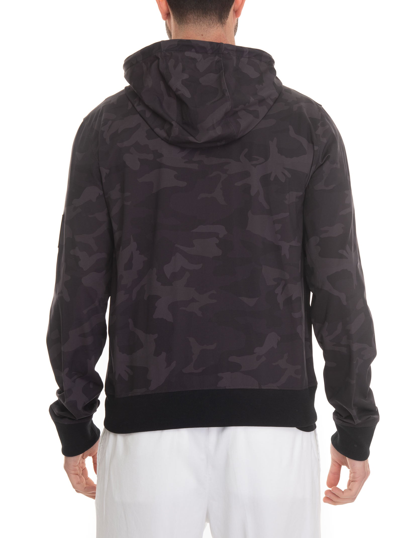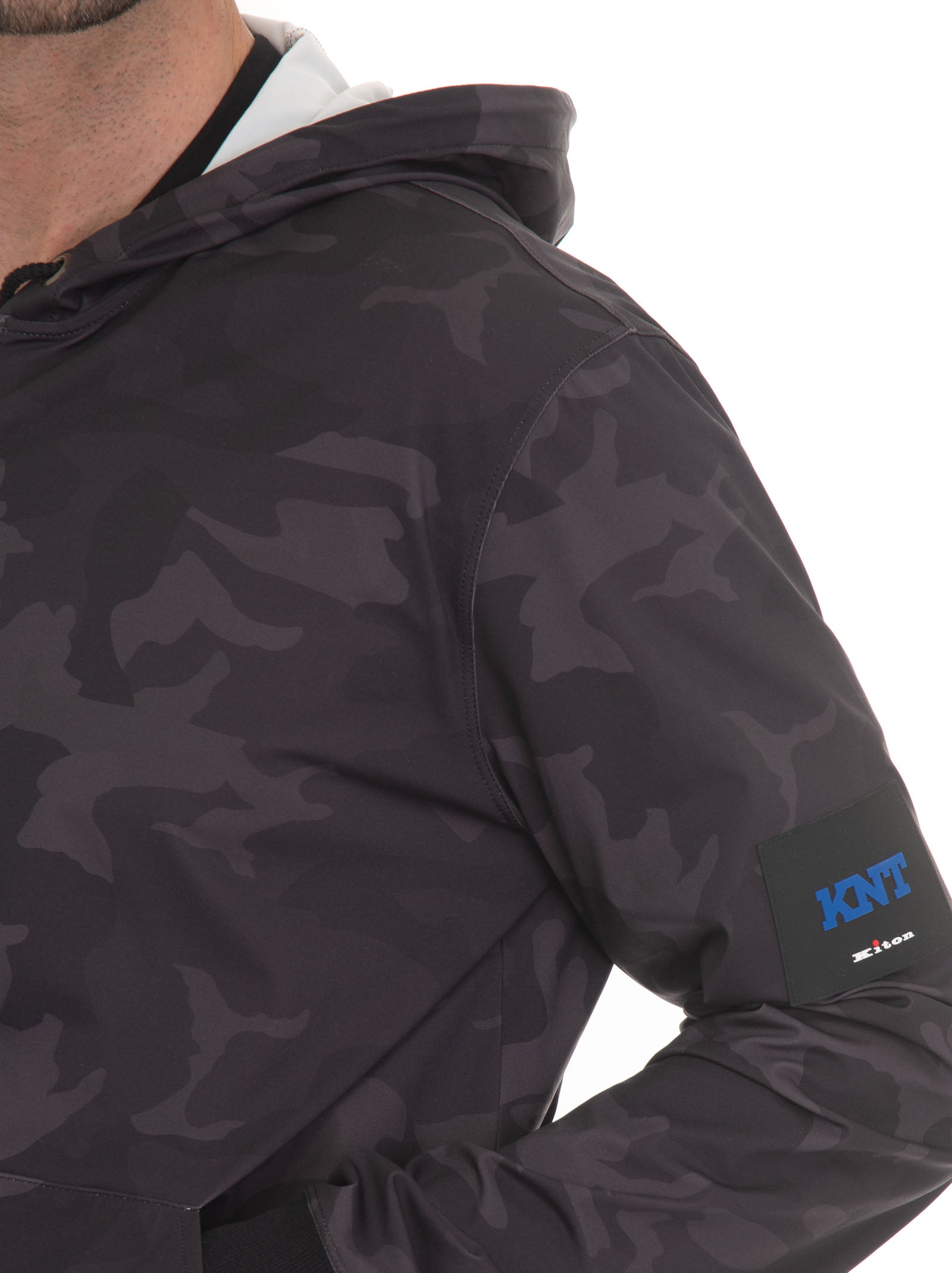 Jacket with hood, camouflage pattern, zip closure, logo on the arm, knitted cuffs and spring, kangaroo pockets, regular fit, composition: 85% polyester, 15% elastane, line: KITON.