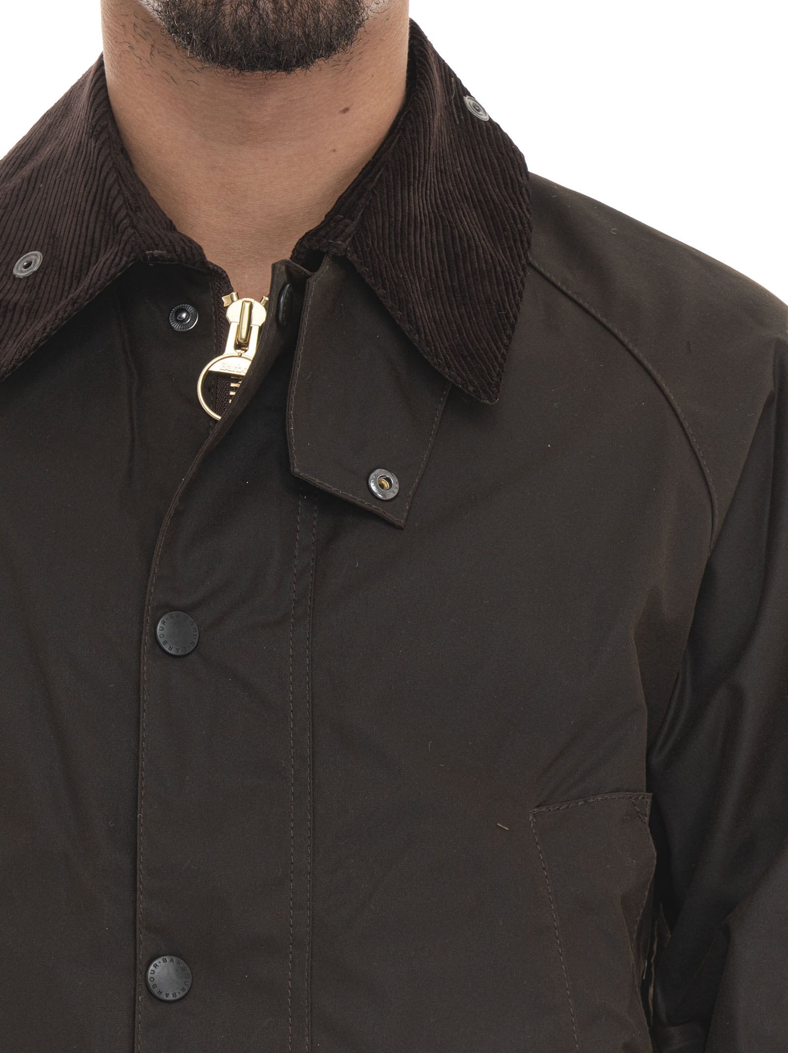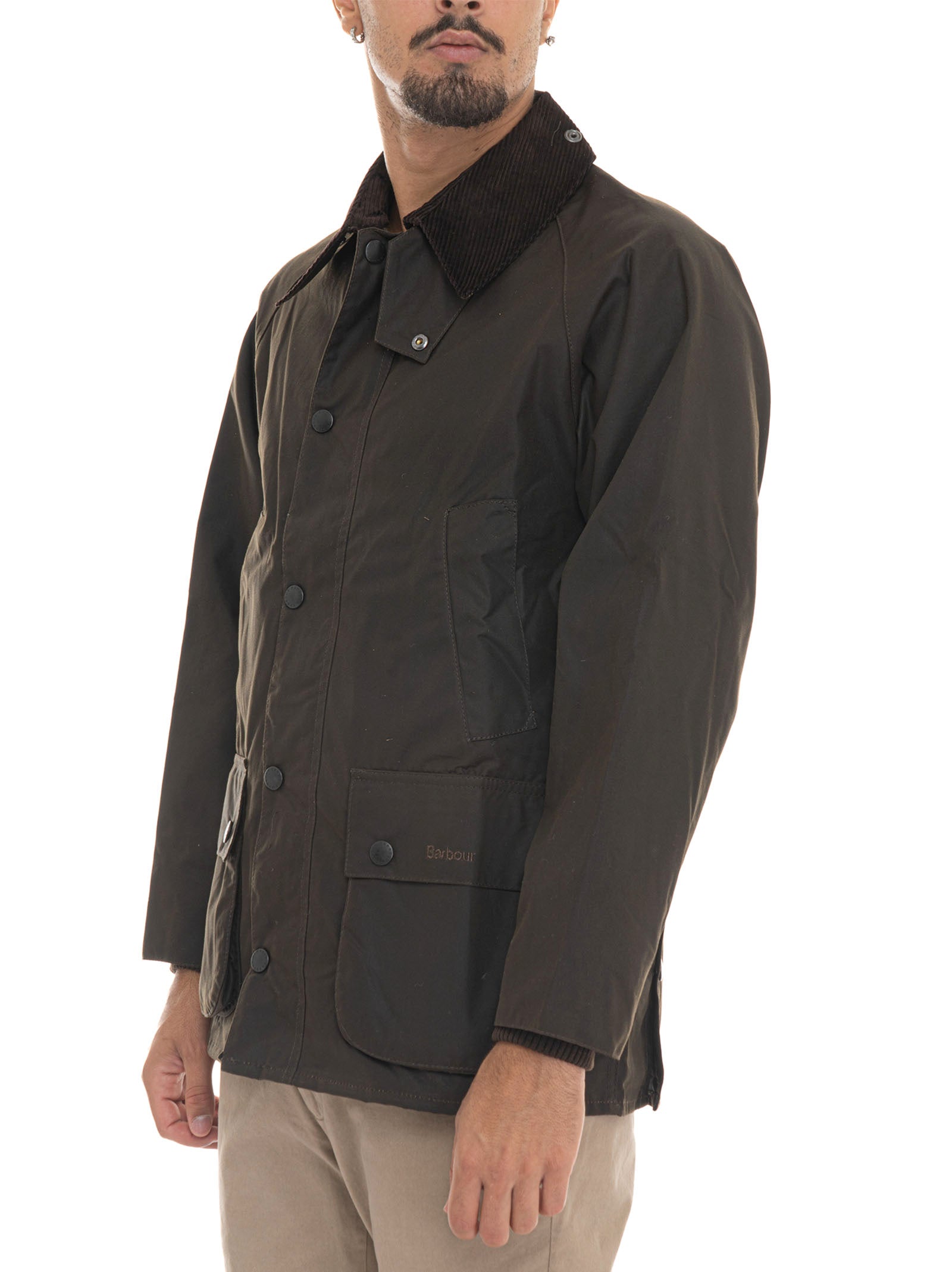 Barbour Bedale short jacket, button and concealed zip fastening, patch pockets, windproof cuff, waxed fabric, velvet collar, composition: 100% cotton, lining: 100% polyester, line: BARBOUR.