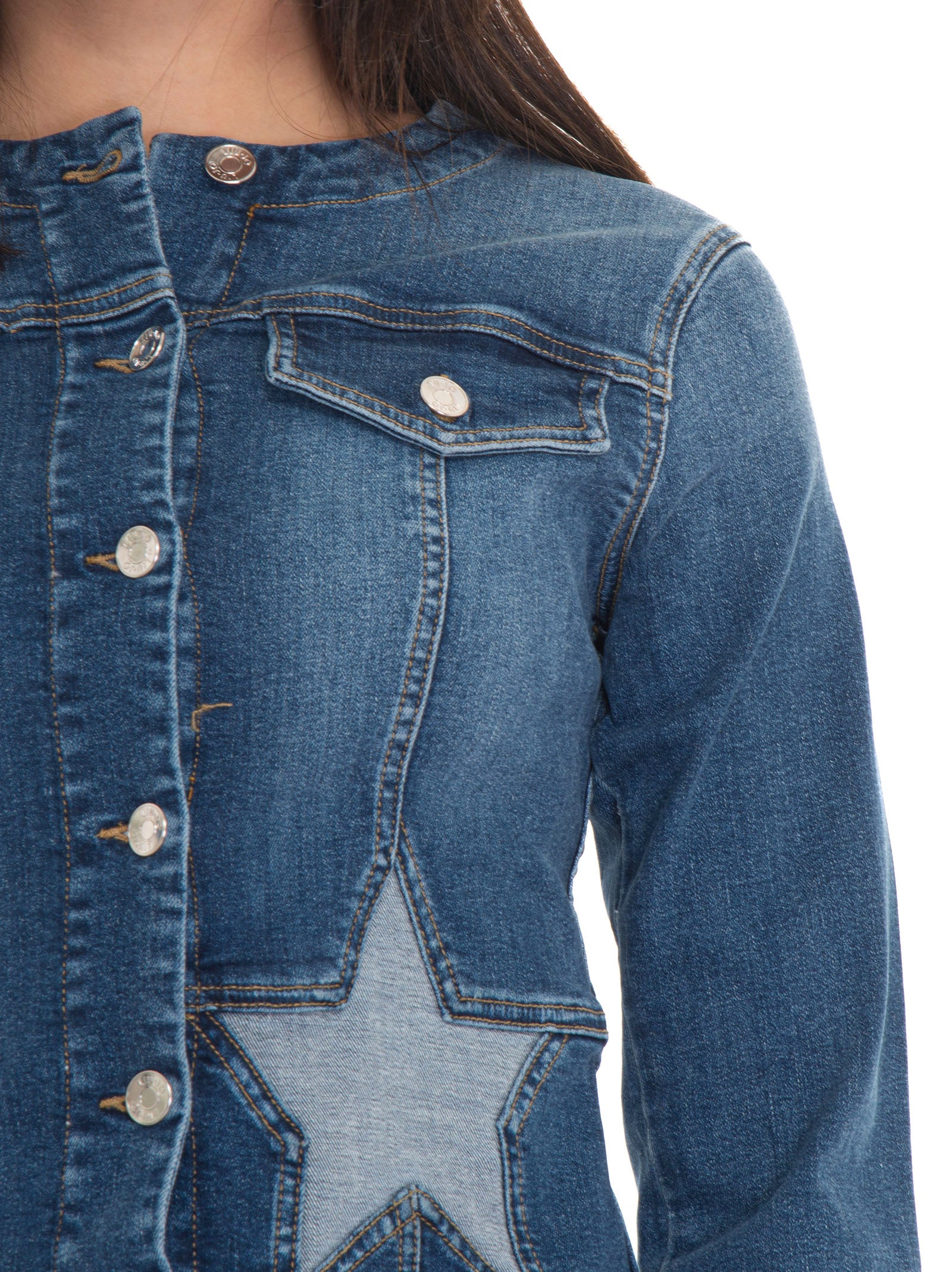 Denim jacket, patch pockets on the front, button closure, crew neck, long sleeves, composition: 98% cotton, 2% elastane, line: LIU JO.