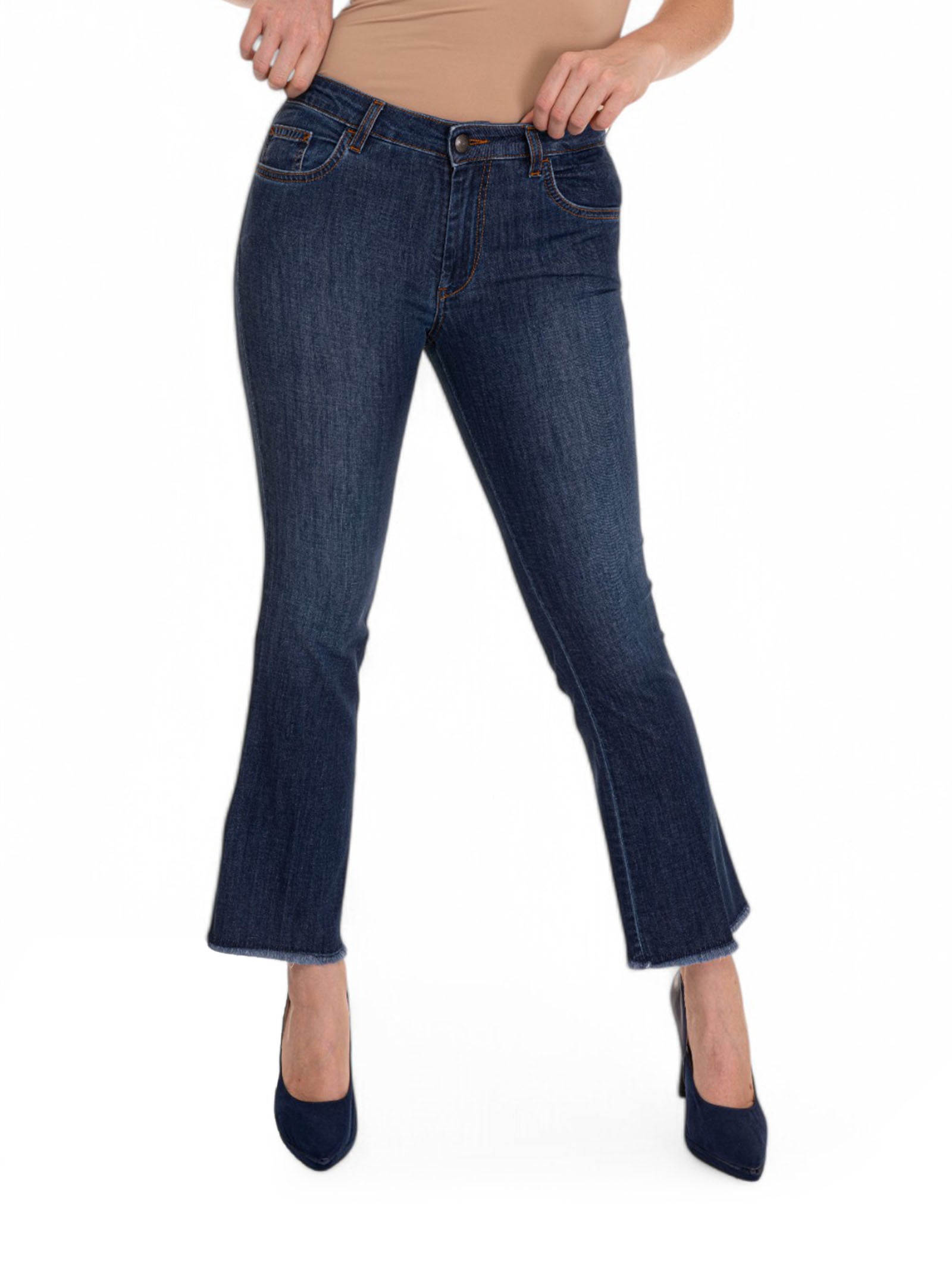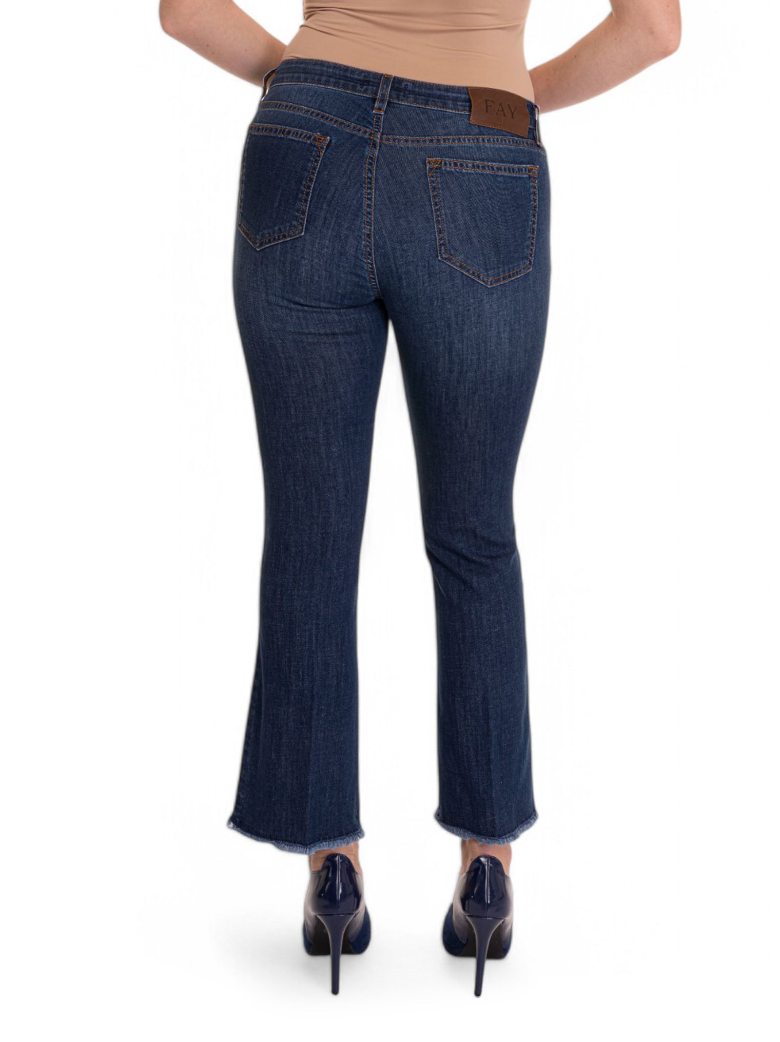 5-pocket jeans, flared leg at the bottom, fringes at the bottom, contrasting stitching, stretch, composition: 98% cotton, 2% elastane, line: FAY.