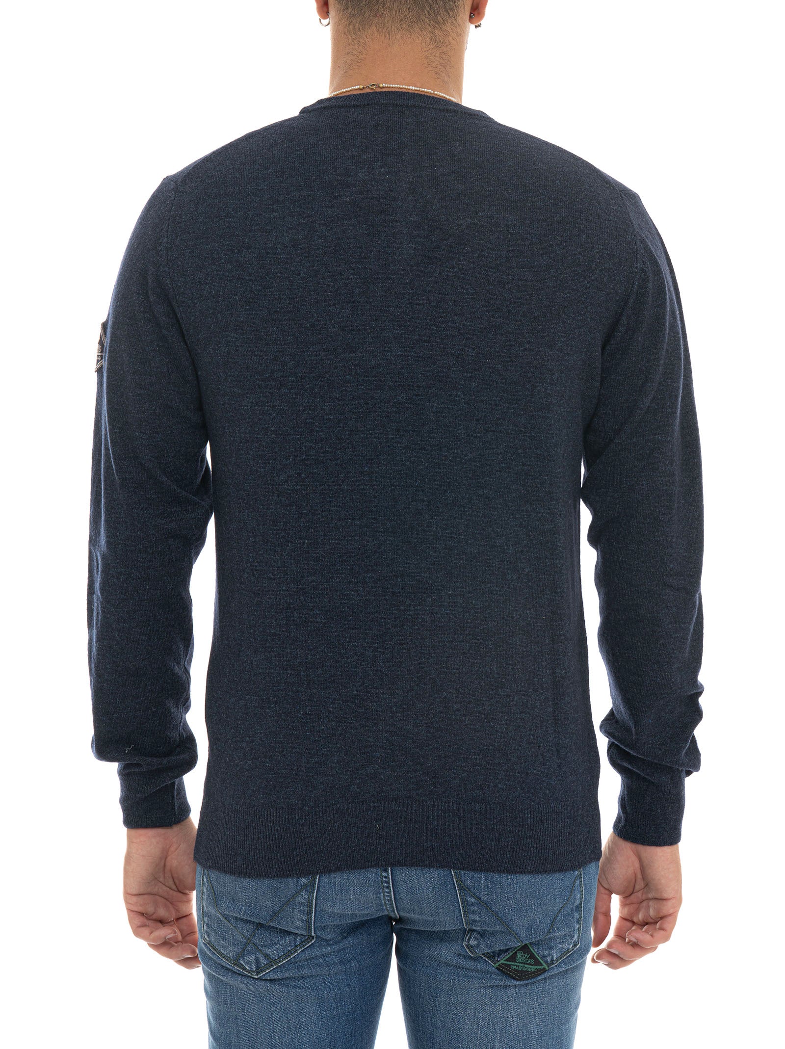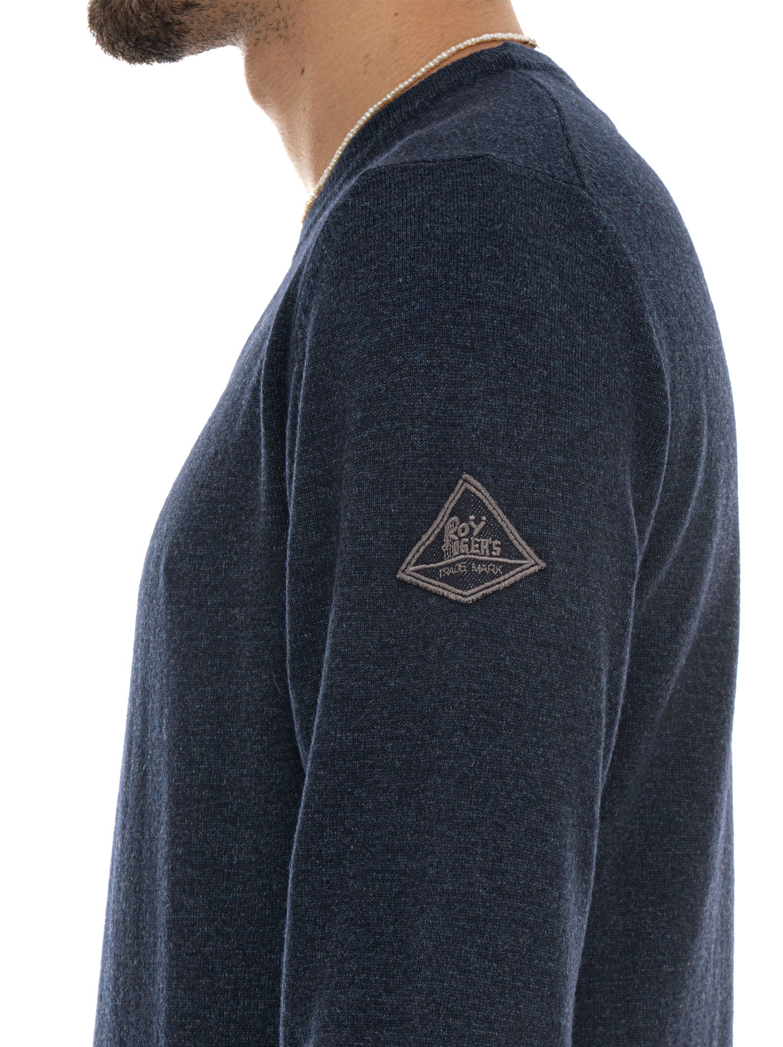 Maglia girocollo, collo, polsi e fondo a costine, logo cucito sul braccio, composizione: 45% lana, 25% viscosa, 25% poliammide, 5% cachemire, linea: ROY ROGERS.