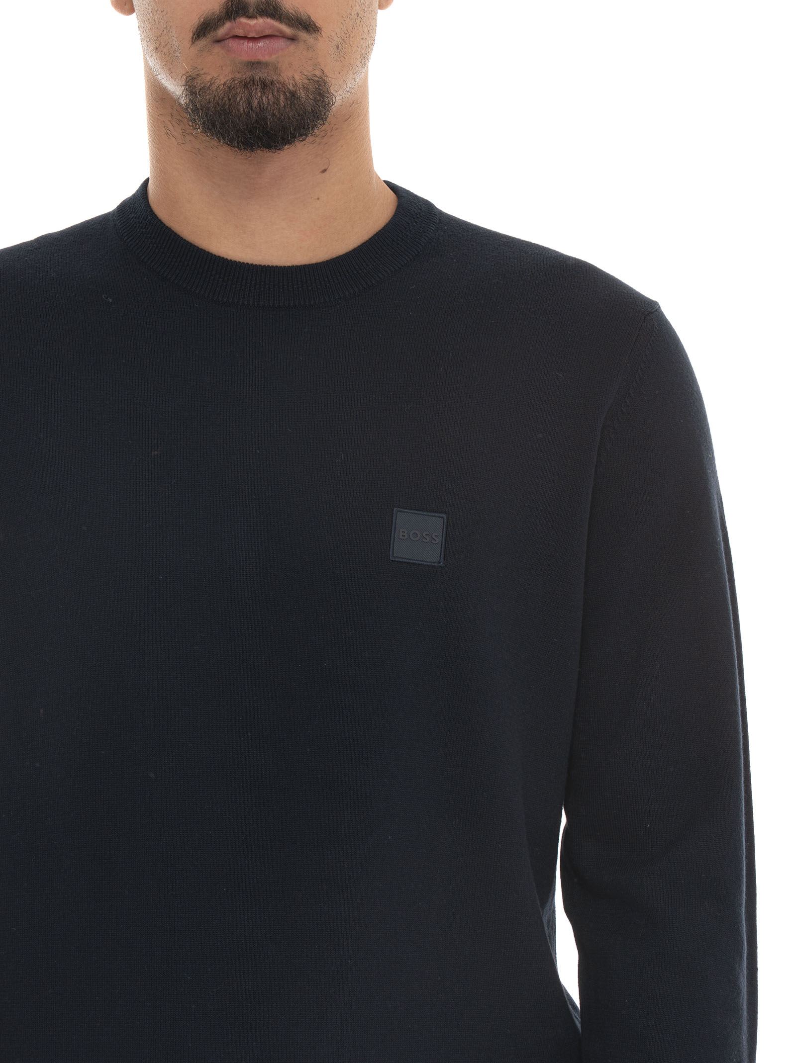 BOSS KANOVANO-S crew neck sweater, long sleeves, side logo, solid color, composition: 95% cotton, 5% cashmere, line: BOSS.