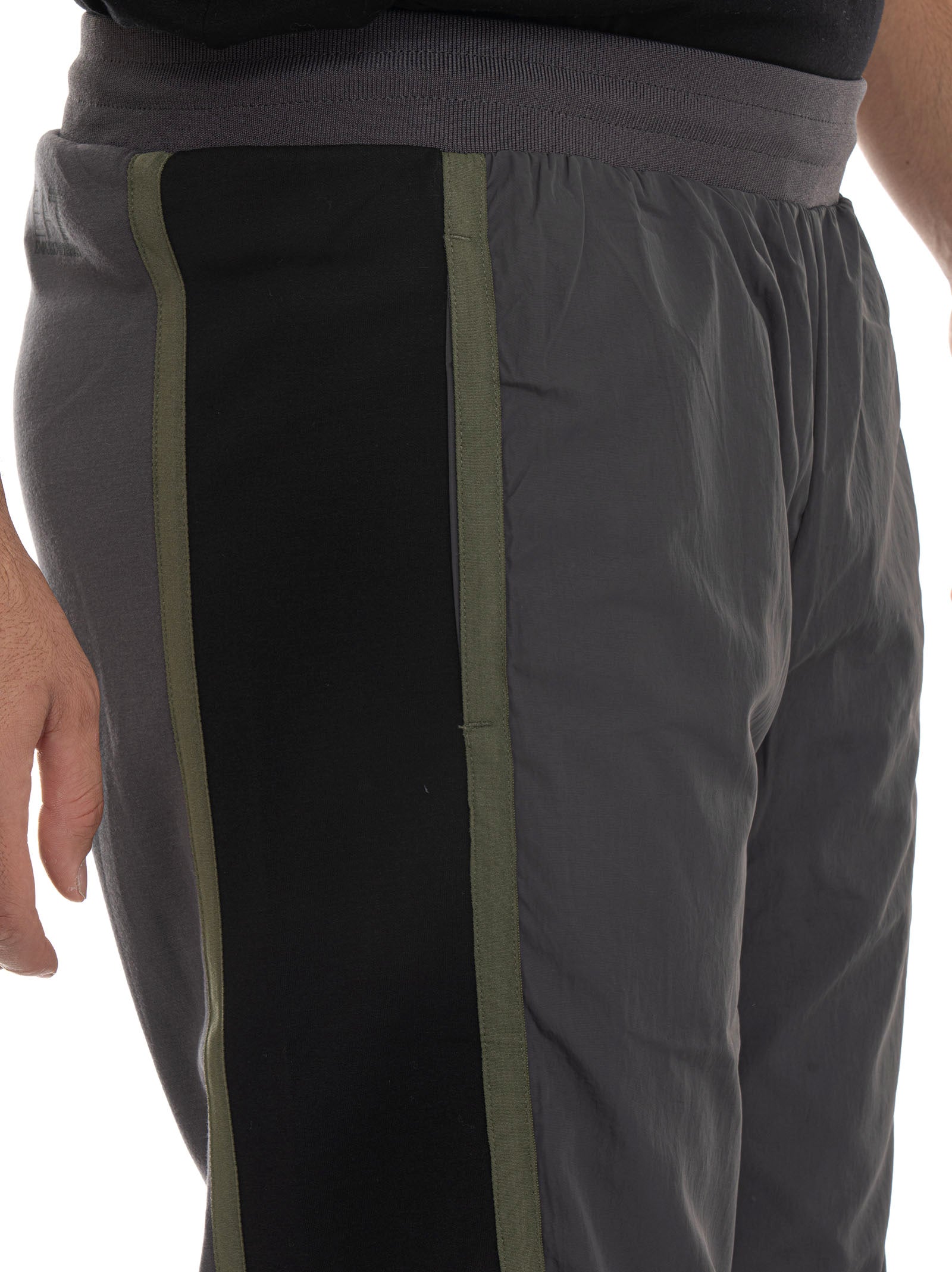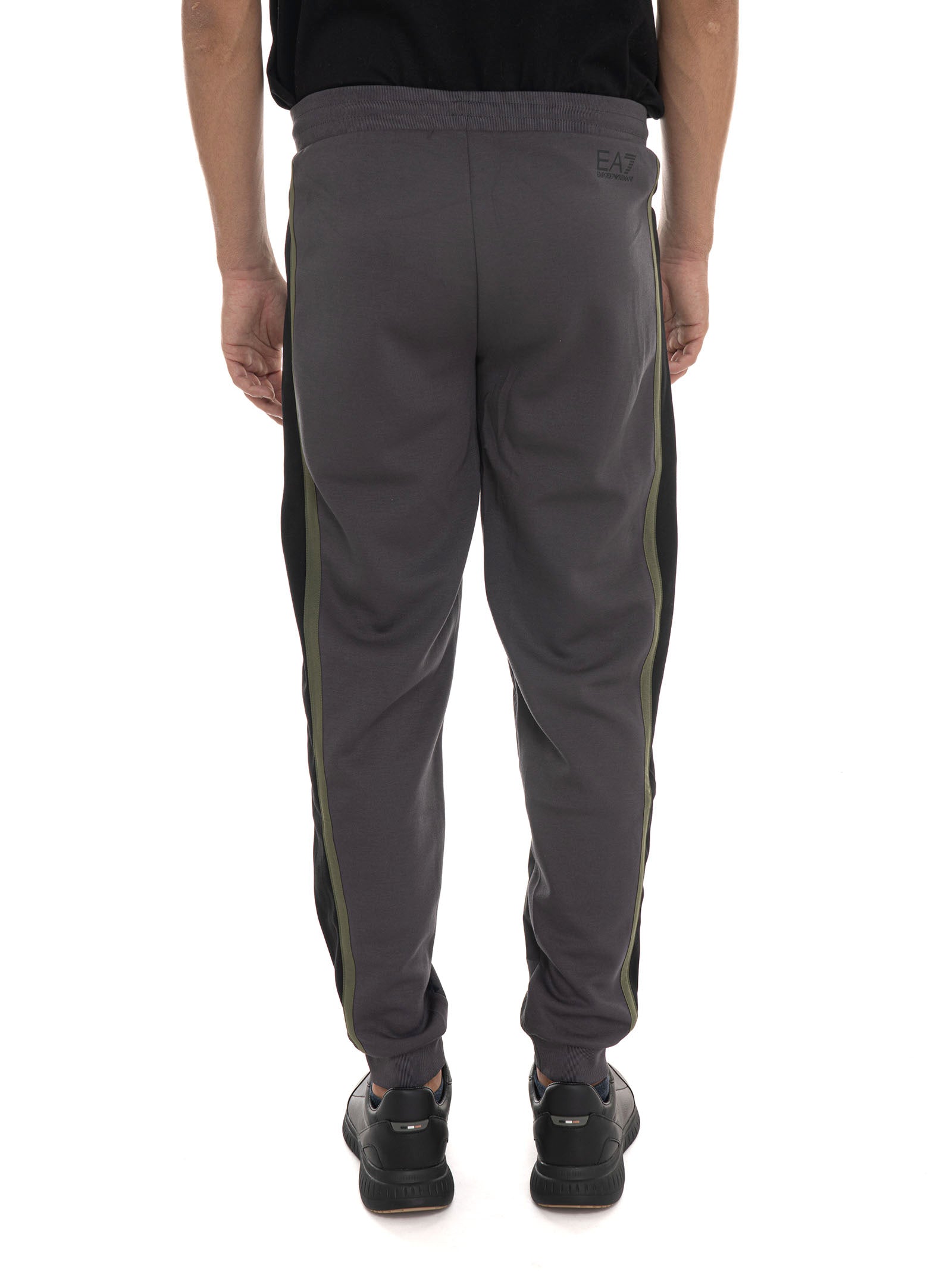 Tracksuit bottoms, two-material, drawstring waist, elastic waist and ankles, front pockets, logo on the bottom, composition: 77% polyester, 6% elastane, 17% viscose, line: EA7.