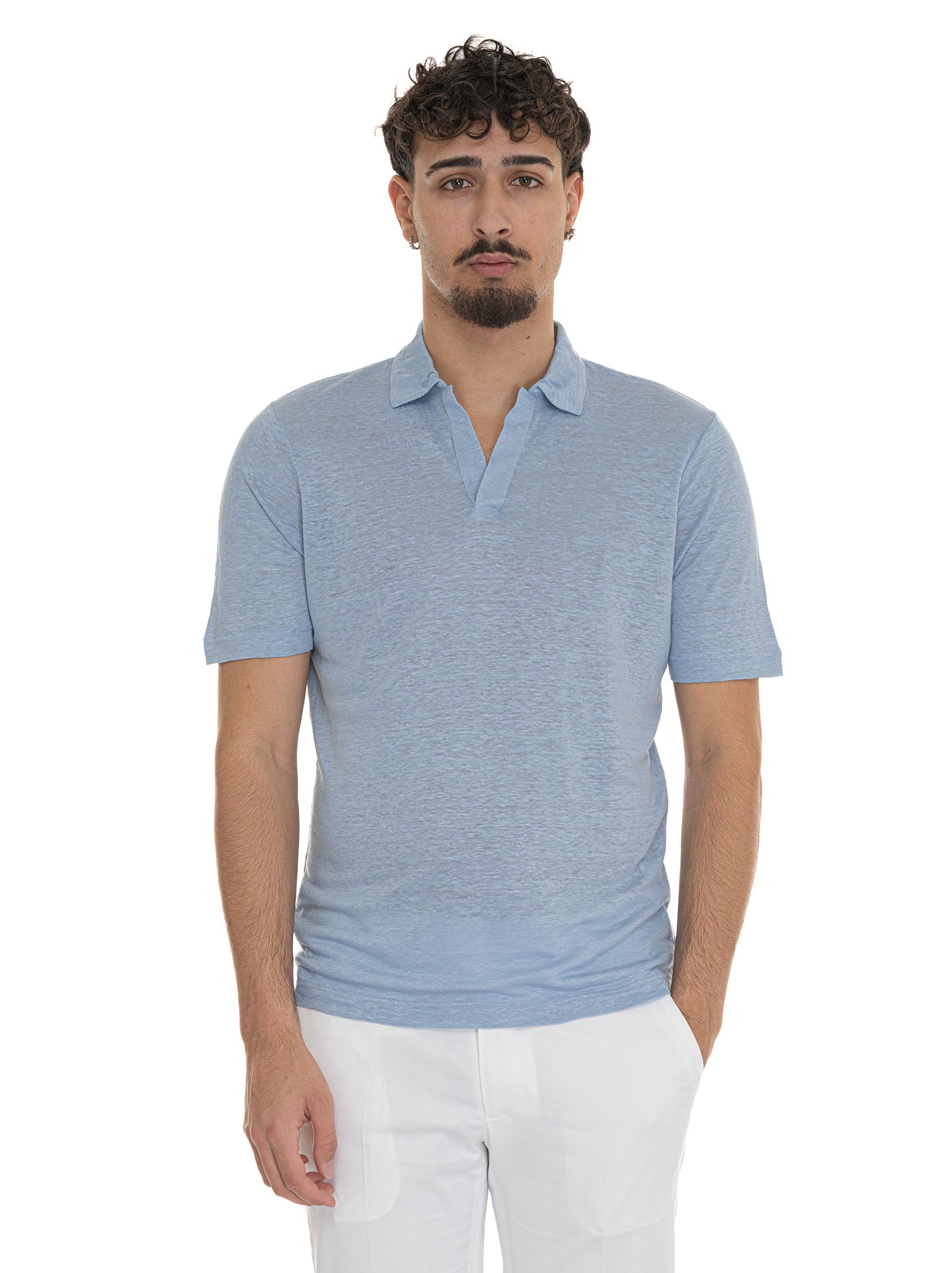 Knitted polo shirt, side vents, slub effect, ultra-light fabric, composition: 100% linen, line: GRAN SASSO.