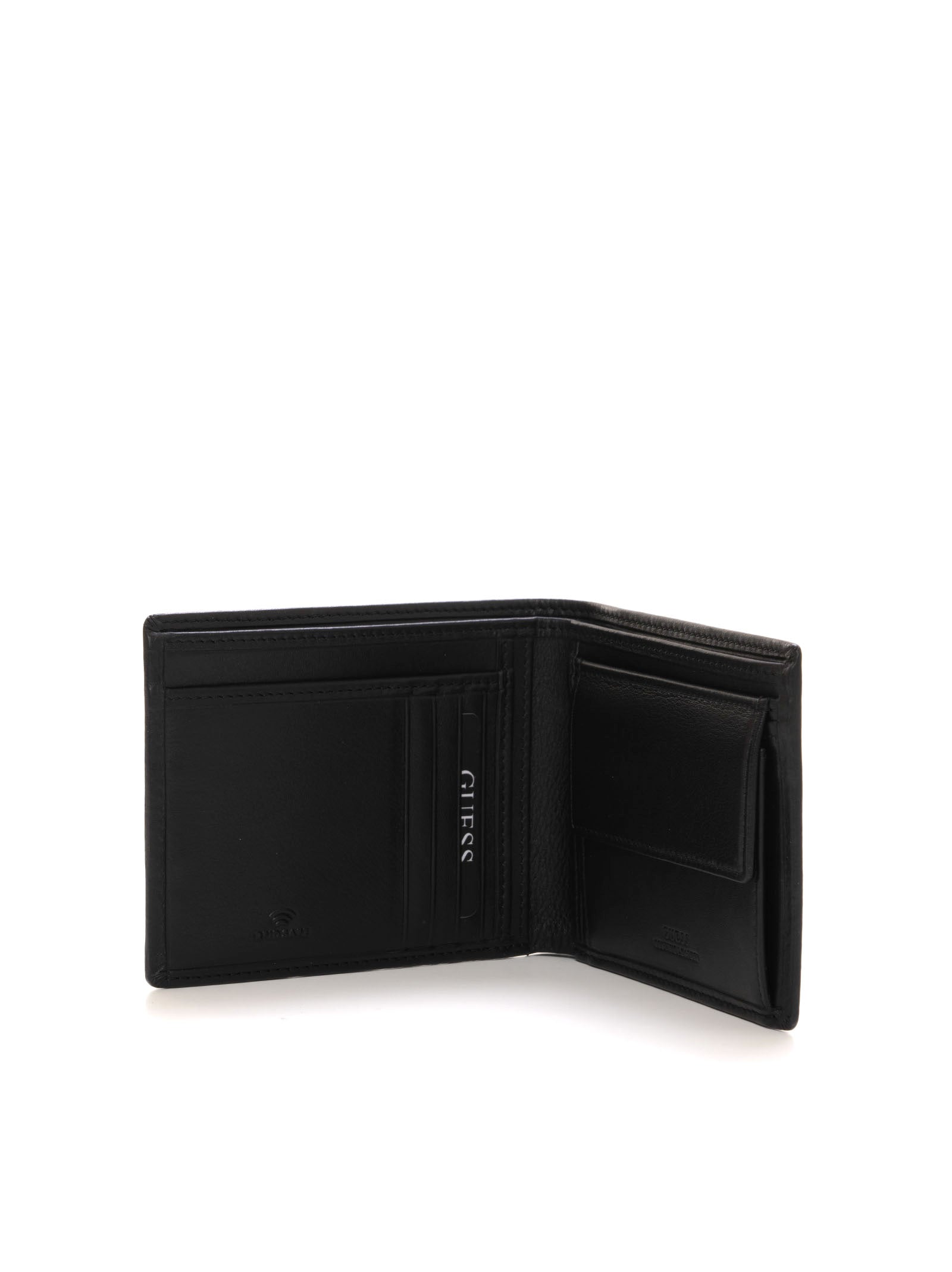 Guess new boston wallet, card slots, banknote compartment, coin compartment, small front logo, composition: 100% leather, line: GUESS.