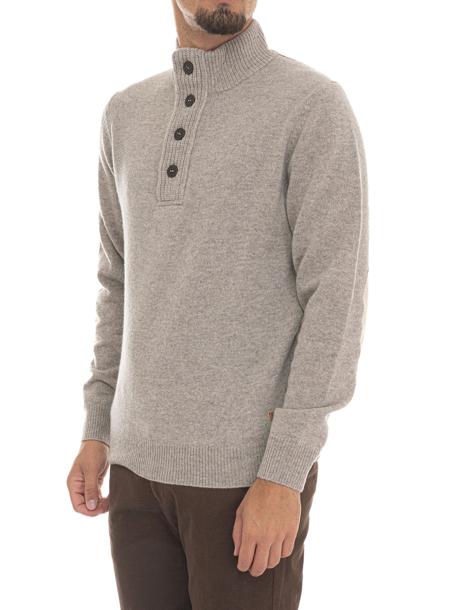 4-button pullover, contrasting elbow patches, contrasting stitched logo, contrasting color profiles, composition: 100% wool, line: BARBOUR.