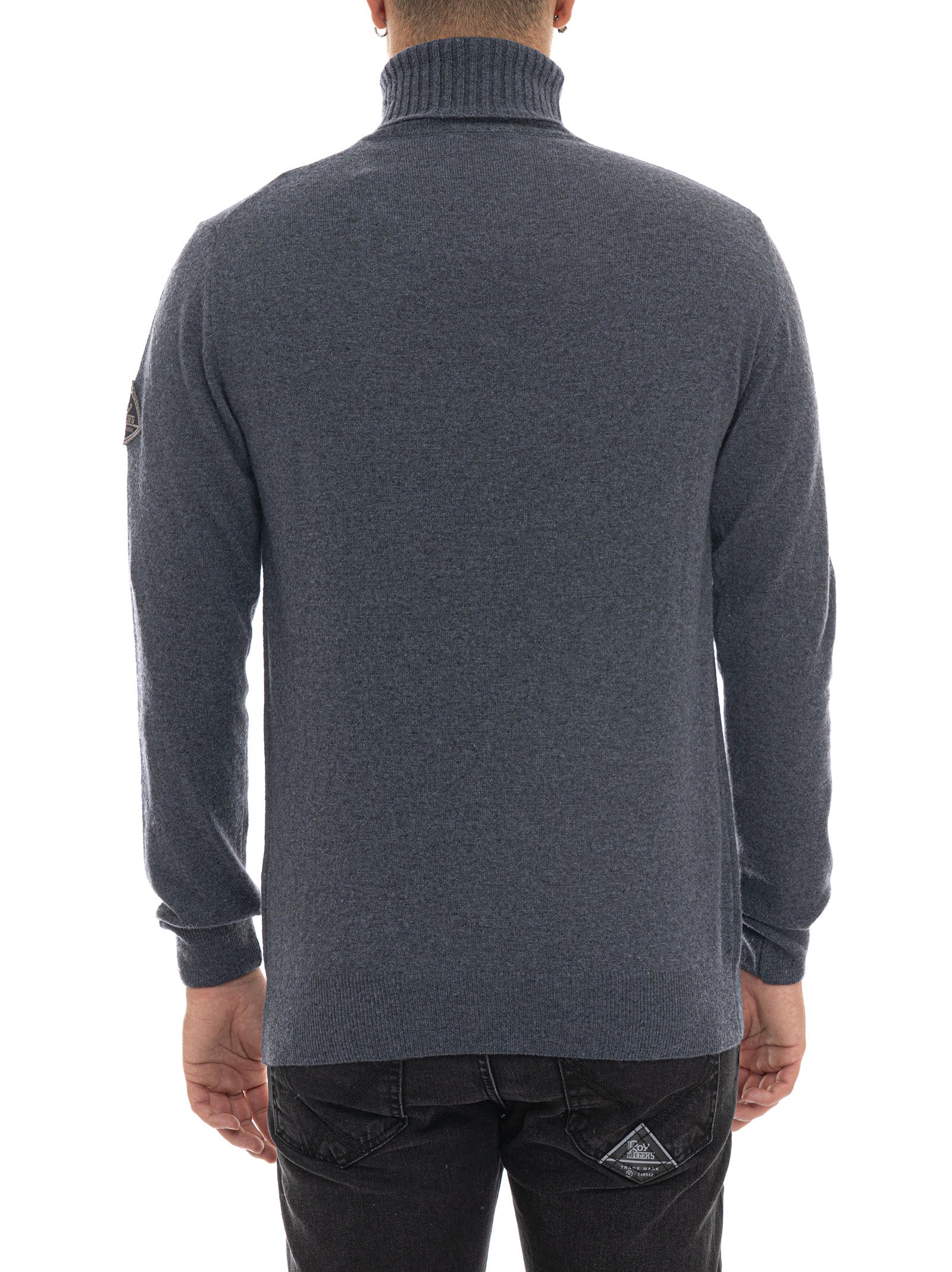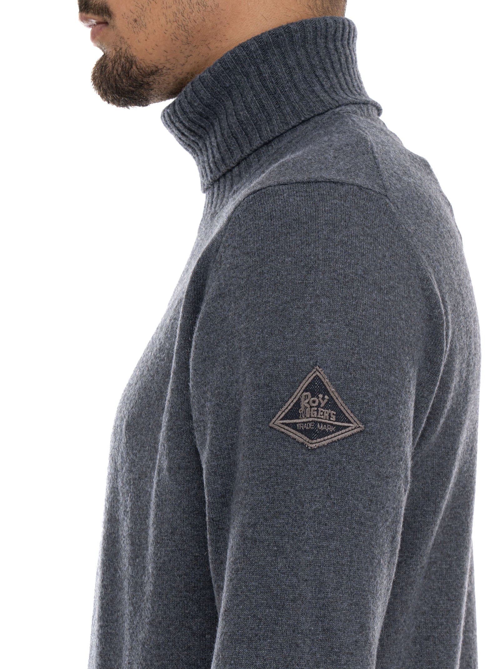 Pullover collo alto, collo, polsi e fondo a costine, logo cucito sul braccio, composizione: 45% lana, 25% viscosa, 25% poliammide, 5% cachemire, linea: ROY ROGERS.