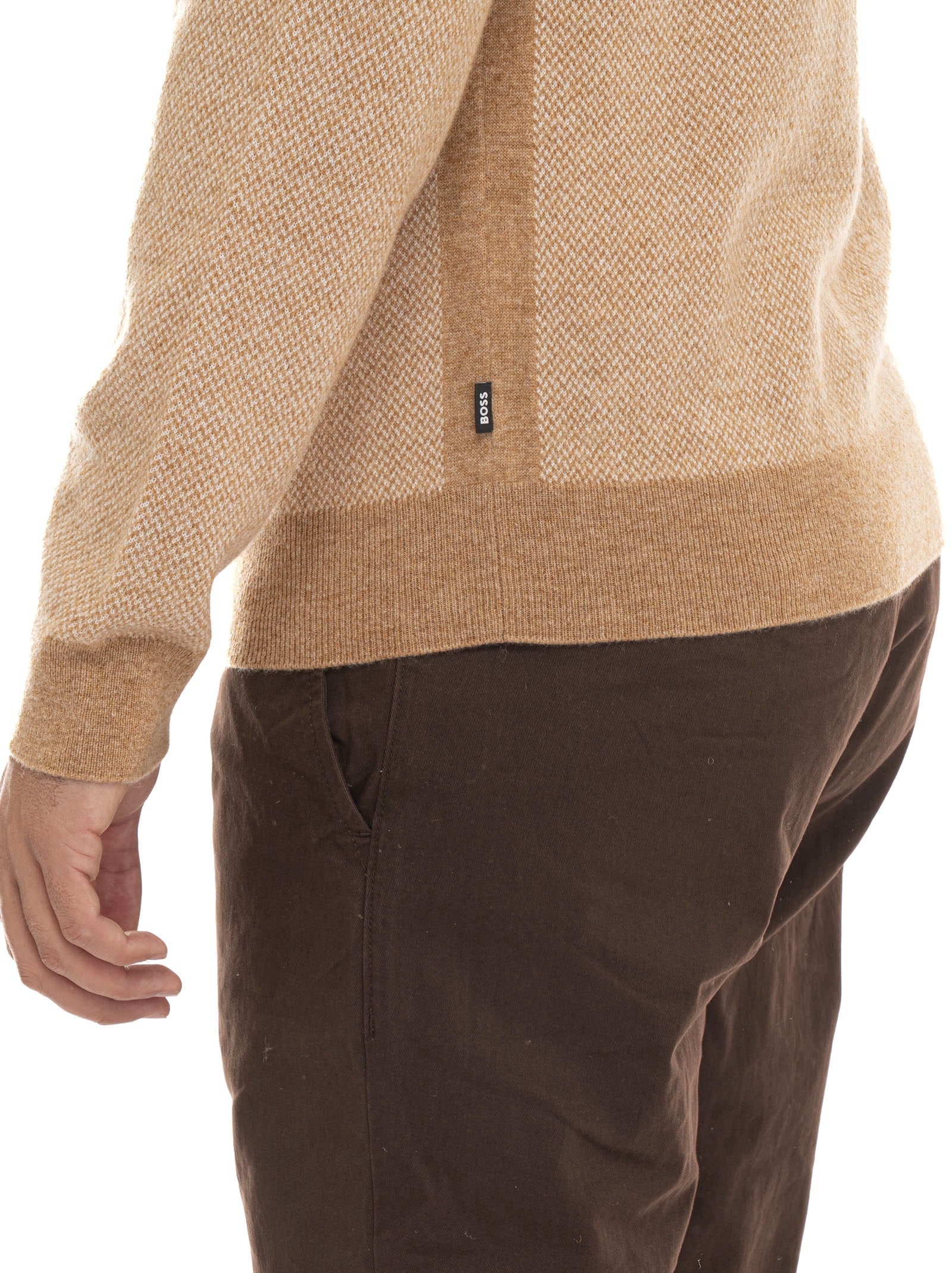 BOSS Men's H-HESTRO Beige Crew Neck Sweater