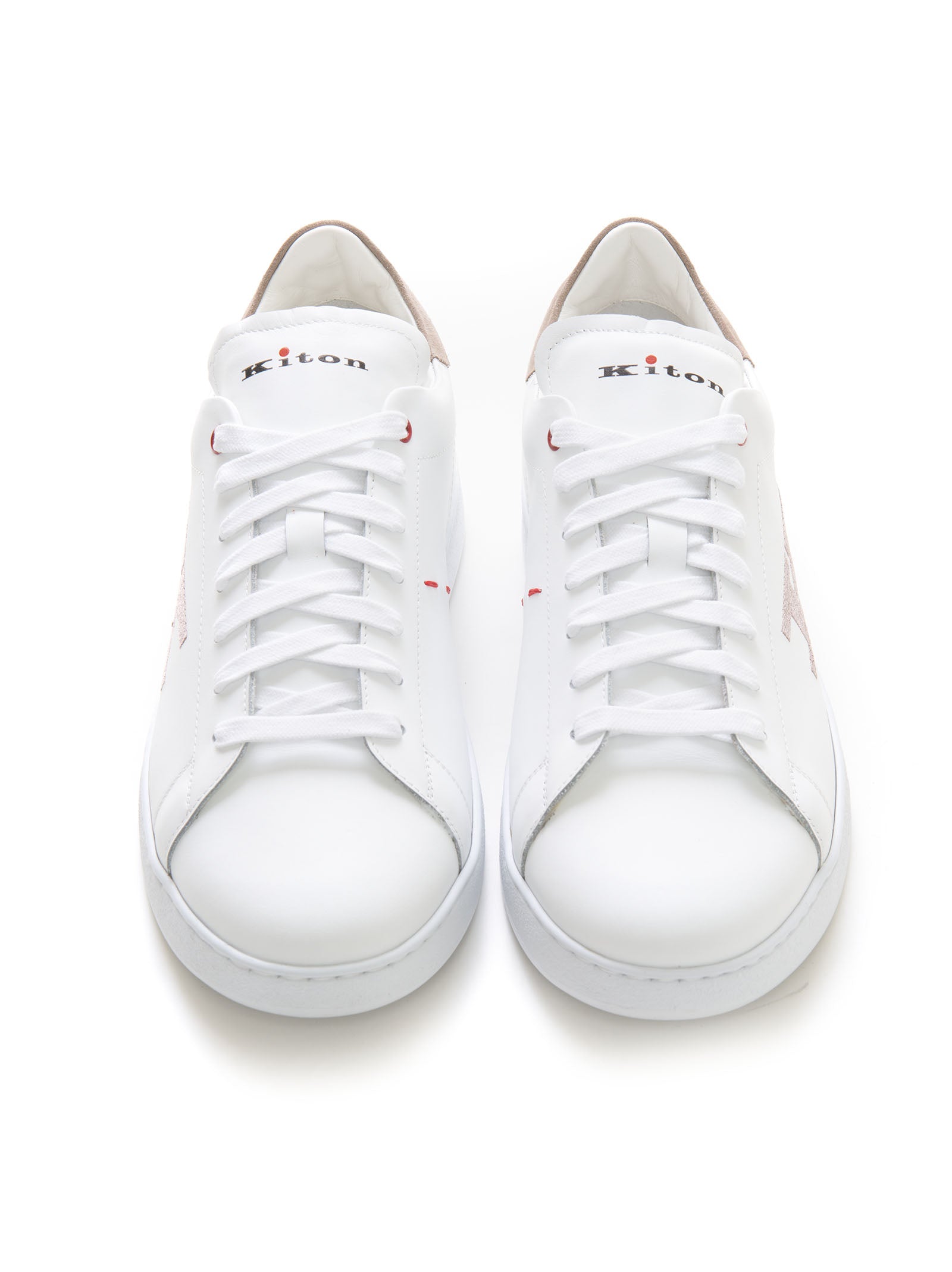Sneakers with laces, contrasting color suede heel, contrasting stitched logo, tongue with logo, non-slip grip sole, composition: 100% leather, line: KITON.