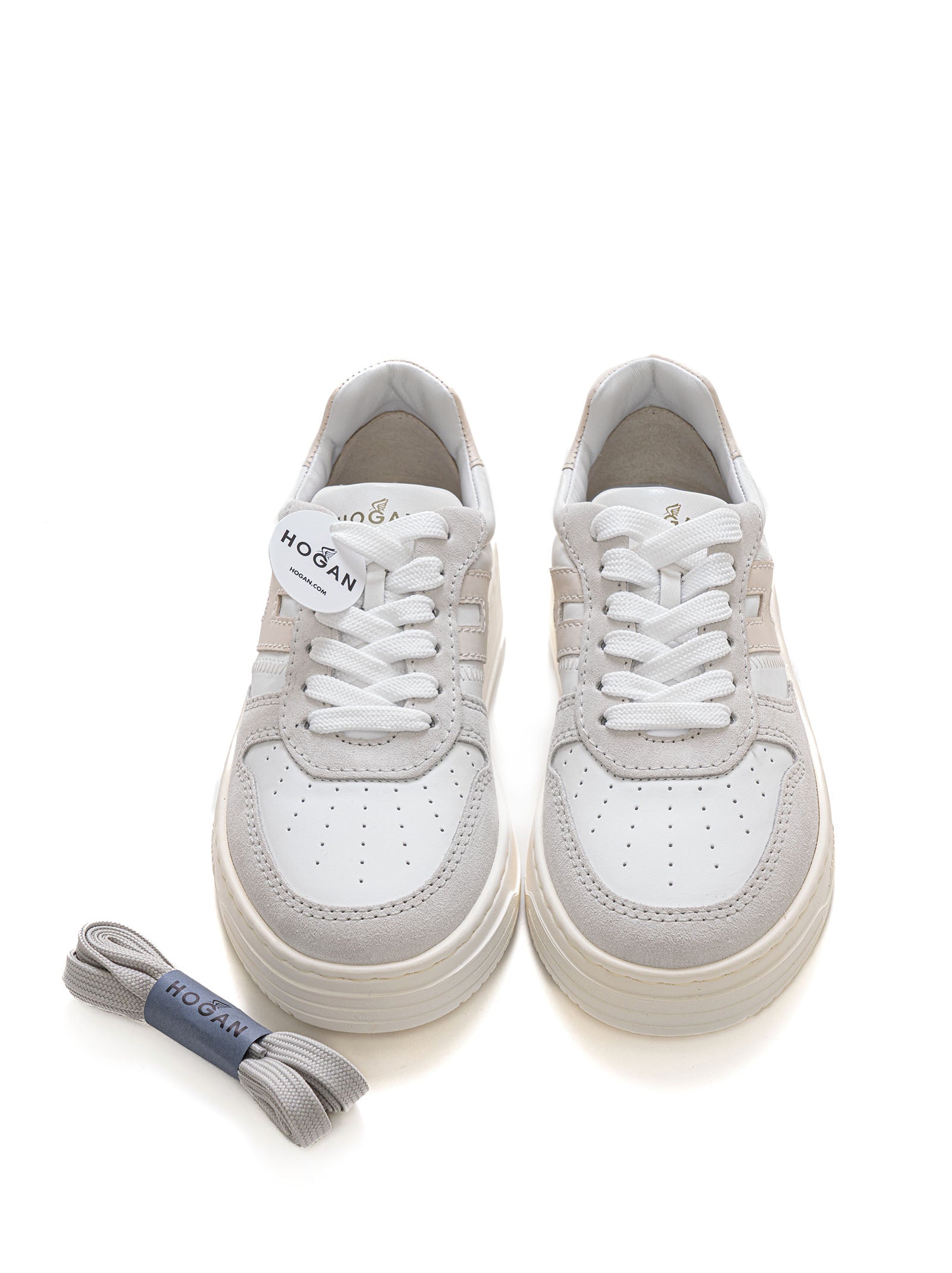 Hogan Women's H30 White-Pink Lace-Up Leather Sneakers