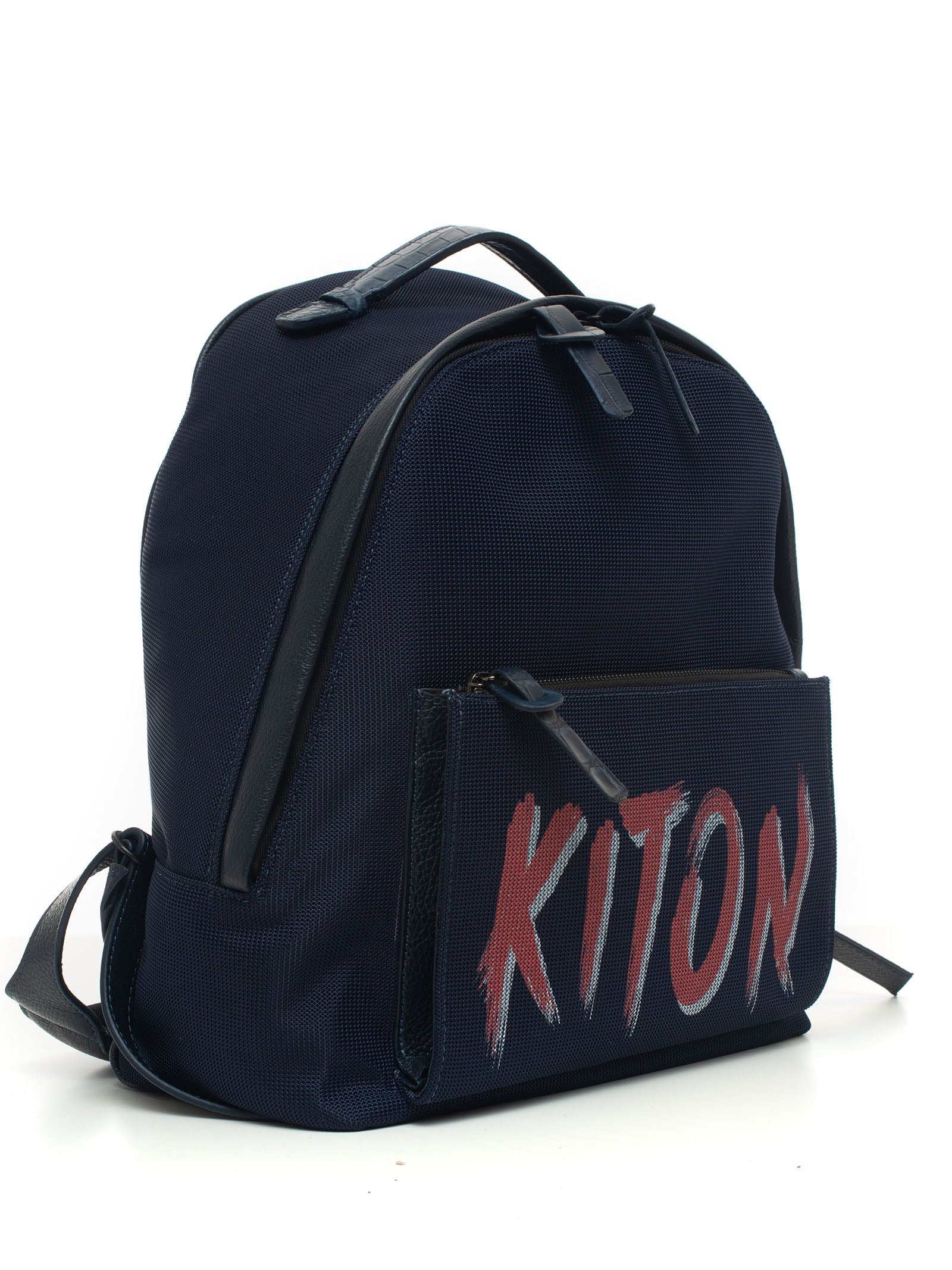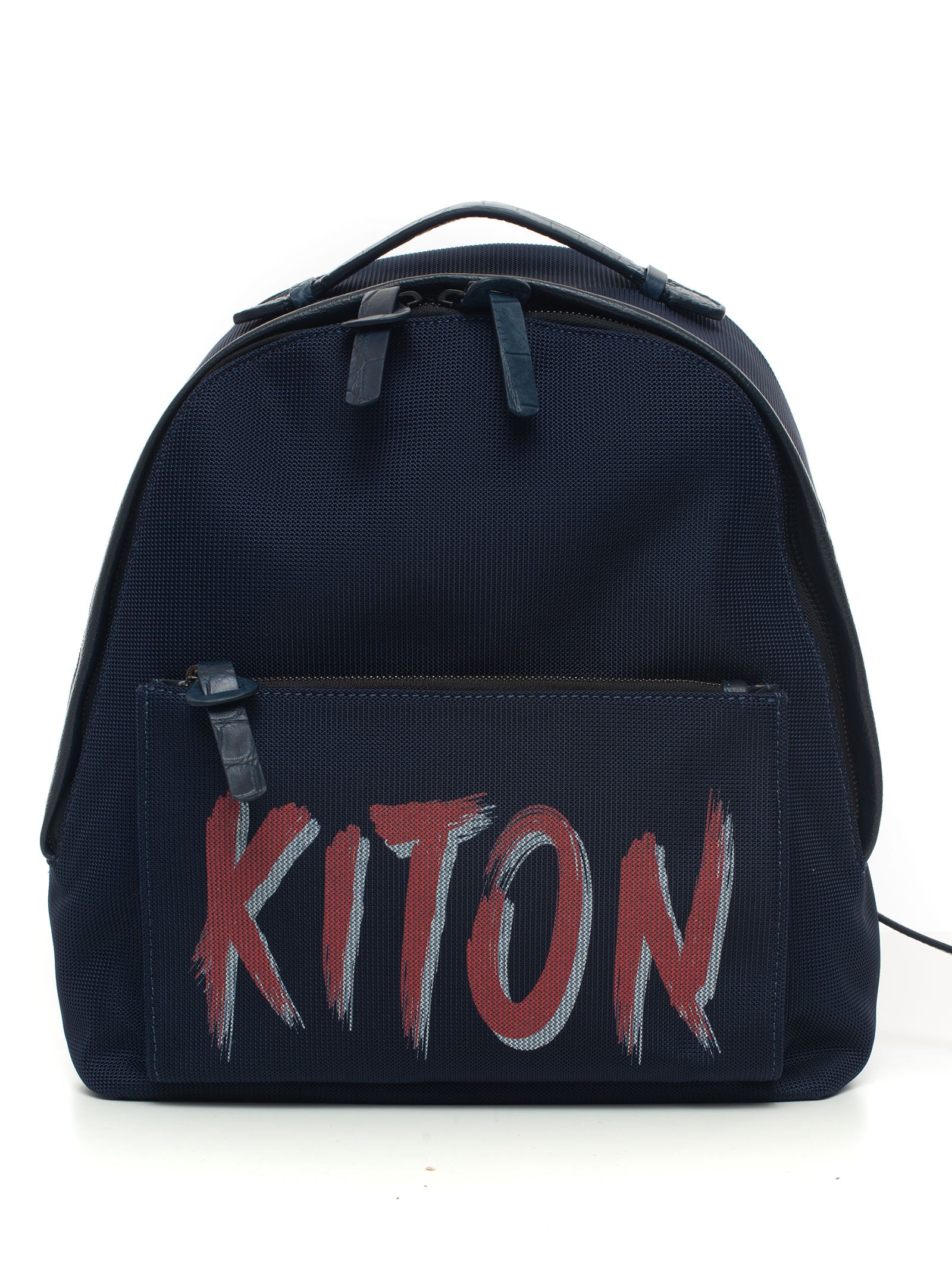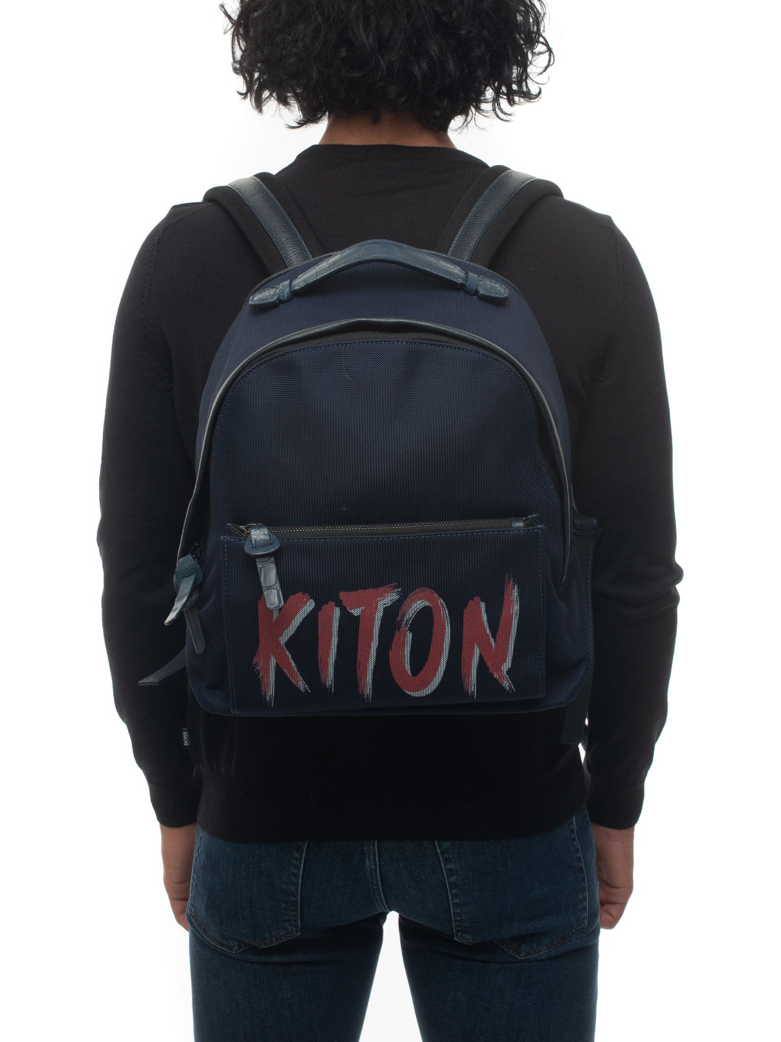 Leather and Cordura backpack, maxi logo, adjustable straps, made in Italy, composition: 90% nylon, 10% leather, line: KITON.