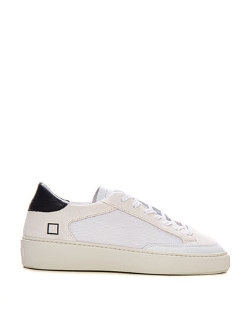 DATE Sn23 net canvas and leather sneakers, removable footbed, suede inserts, tongue with logo, contrasting...