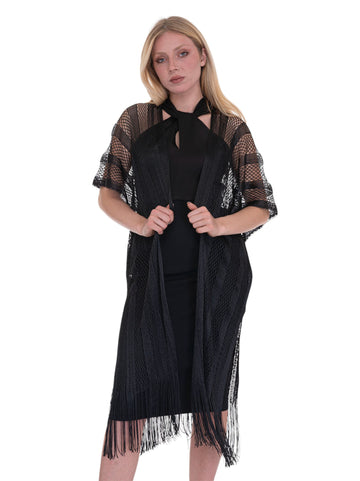 Poncho, mesh workmanship, unfinished edges, logo tab, composition: 100% polyester, line: LIU JO.