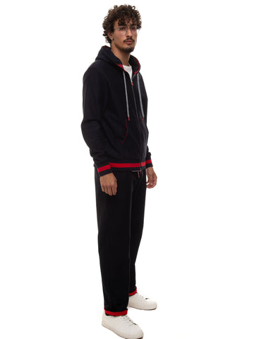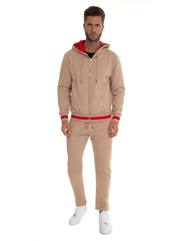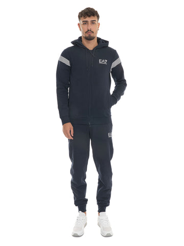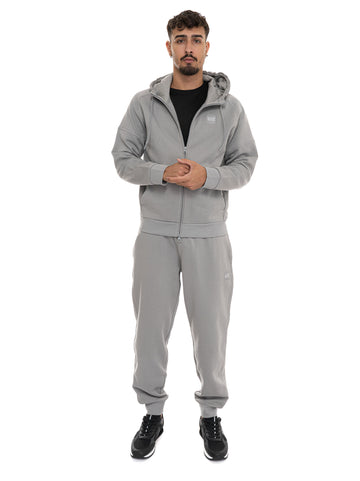 Men's tracksuit with hood, side logo, side pockets, elasticated waist and ankles, double slider zip...
