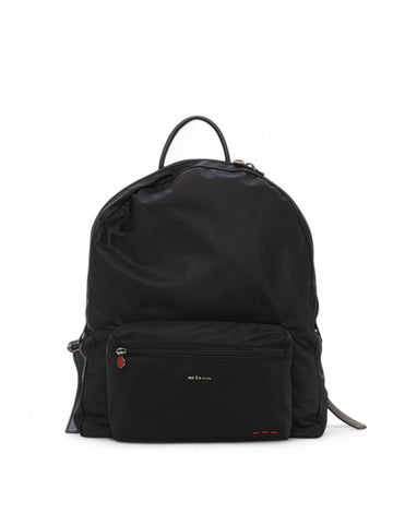 Fabric backpack, leather details, front pocket with zip closure, leather and Cordura shoulder strap, internal...