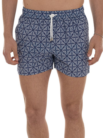 Vincenzo De Lauziers CAPRI-XMARE swim trunks, drawstring waistband, horn pattern, internal mesh, logo on right...