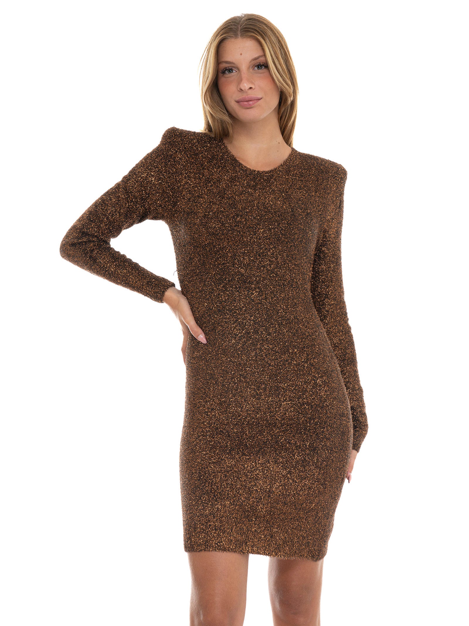 Short dress, low back, logo tab, padded shoulder strap, lurex details, composition: 100% polyester, line: LIU JO.