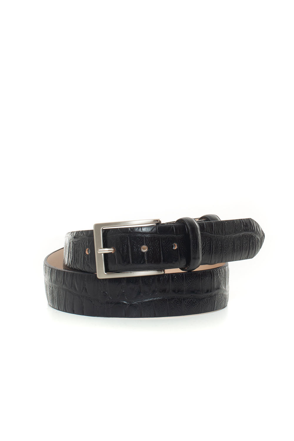 Belt, crocodile print, silver buckle, made in italy, composition: 100% leather, line: ANGELO NARDELLI.