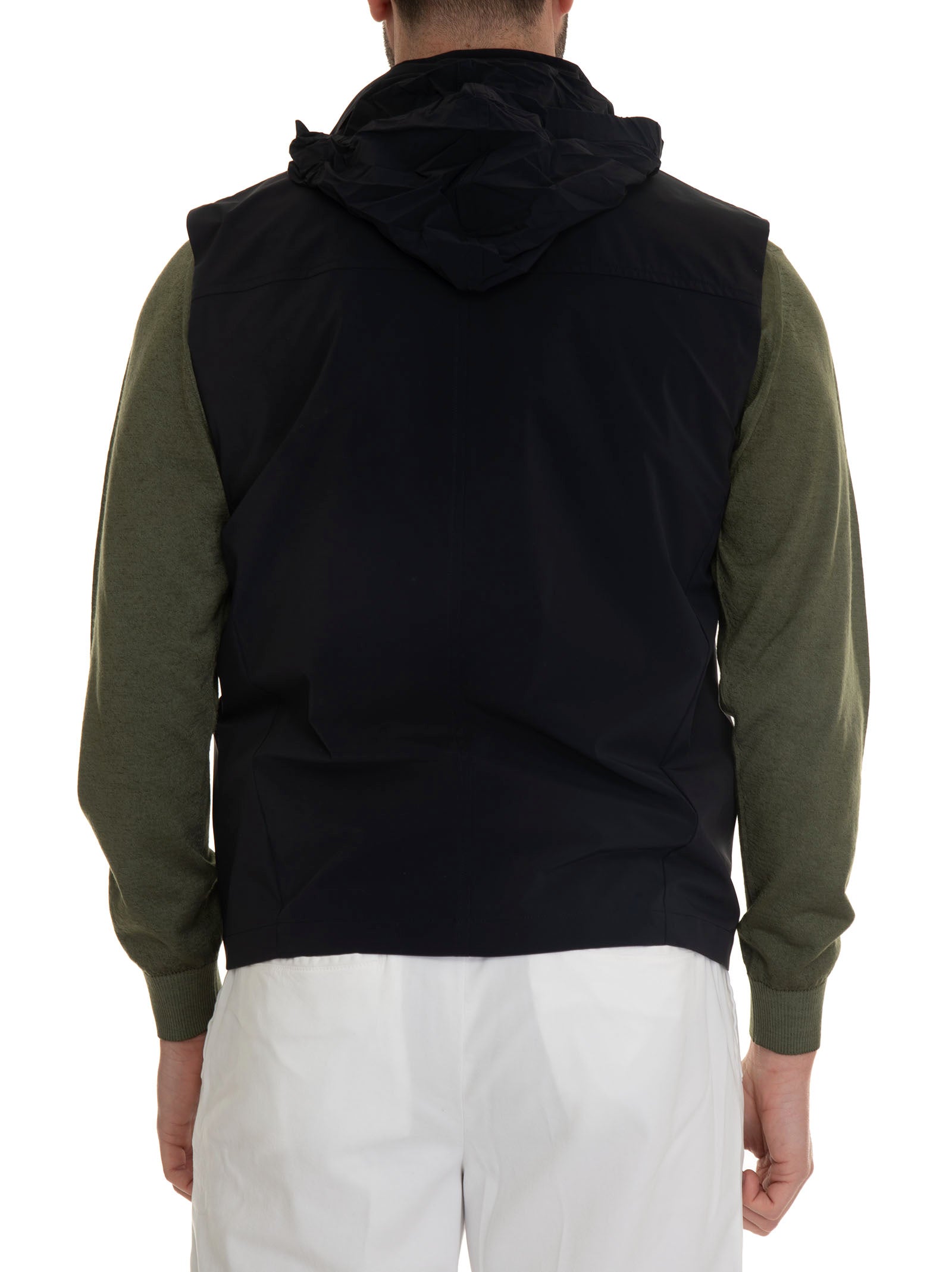 Vest with zip, concealed hood, external pockets, stretch fabric, water resistant, slim fit, composition: 81% polyamide, 19% elastane, line: KIRED.