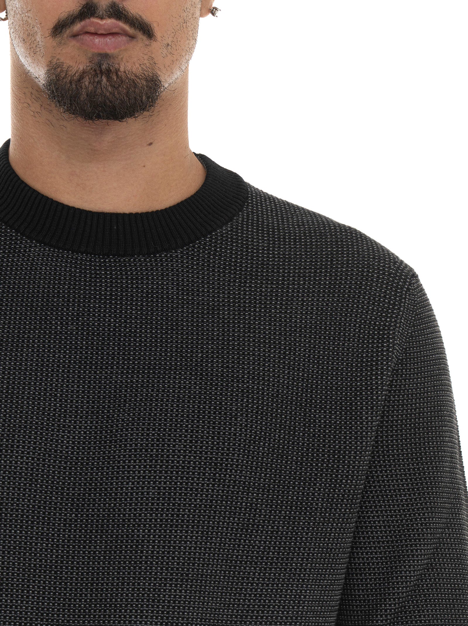 BOSS KLAPOK crew neck sweater, cuffs and hem in English jersey, micro pattern, tongue with logo, composition: 85% cotton, 15% Kapok, line: BOSS.