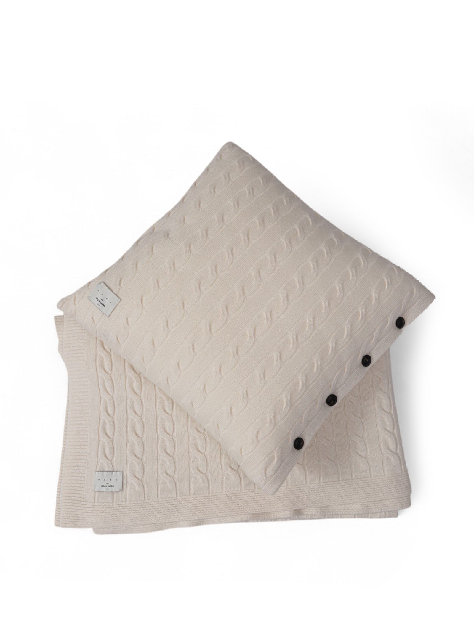 Plaid, cable knit, composition: 100% cashmere, line: GRAN SASSO HOME.