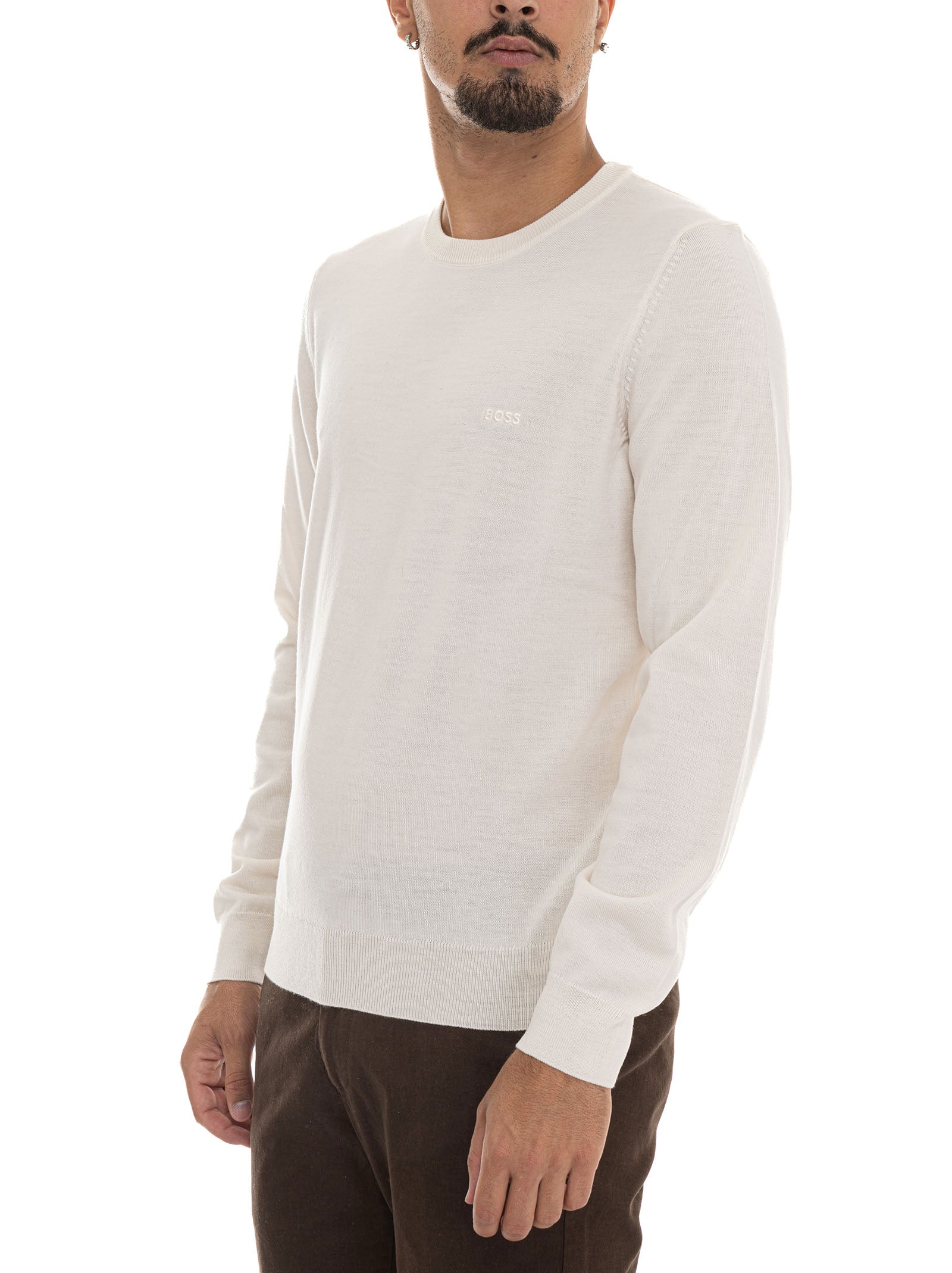 BOSS BOTTO-L crew neck sweater, logo on the chest, solid color, composition: 100% wool, line: BOSS.