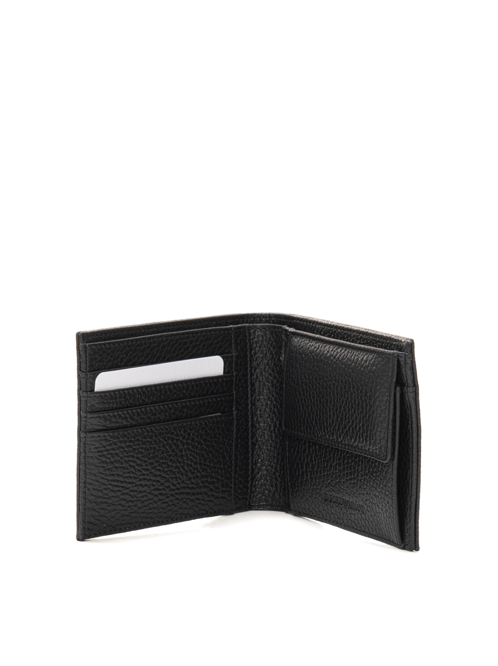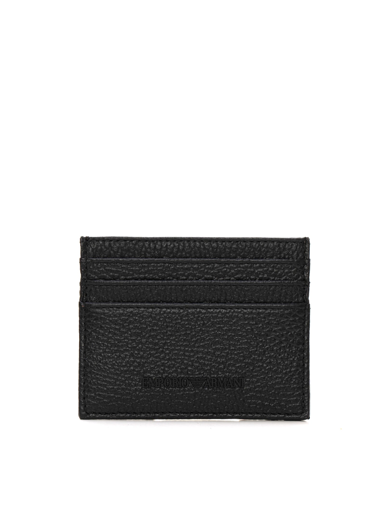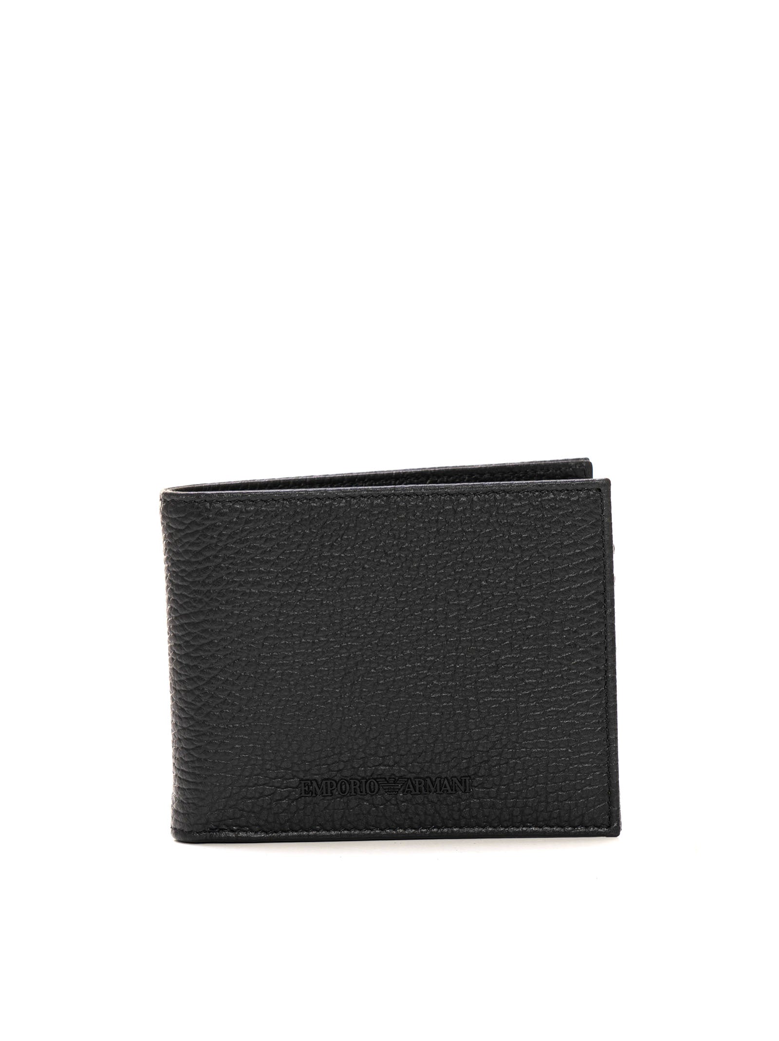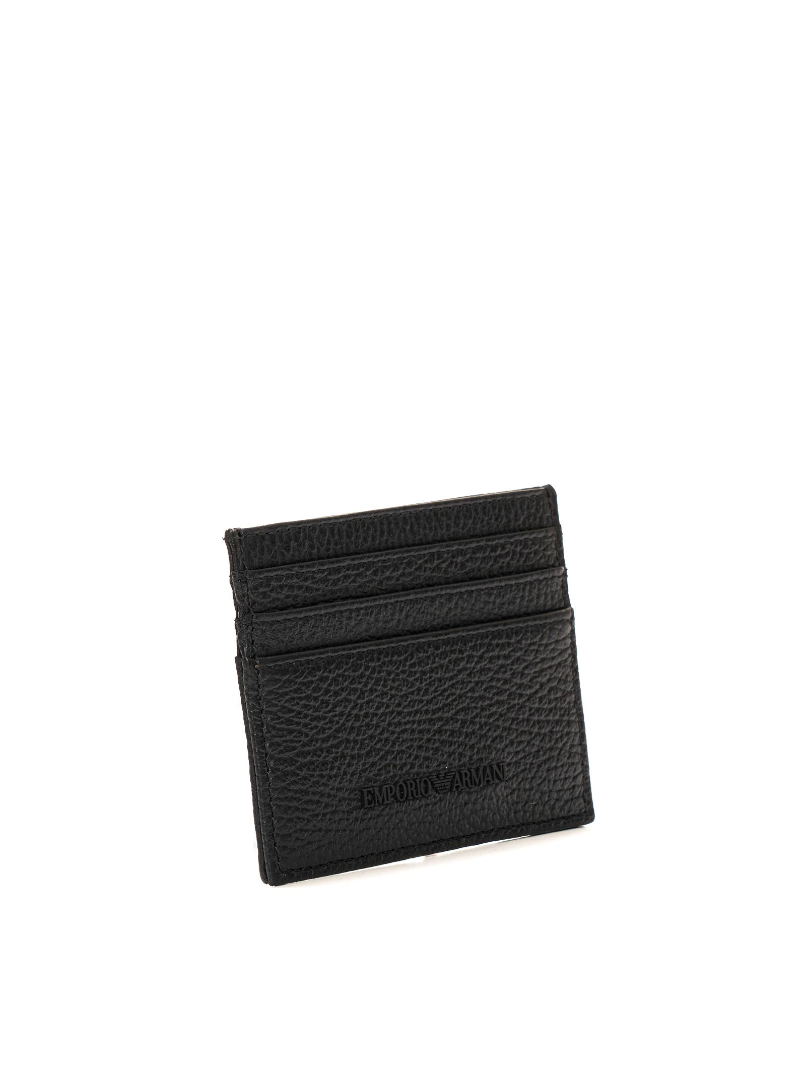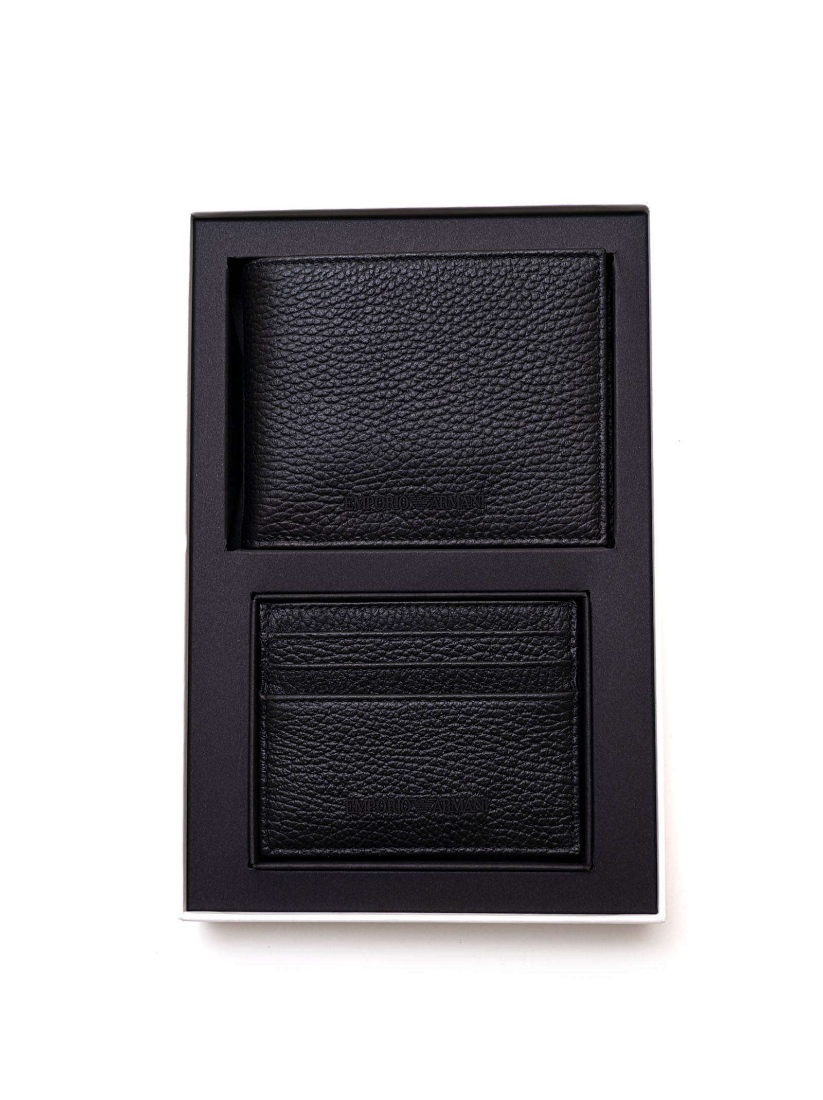 Wallet and card holder set, textured leather, card holder compartments, banknote compartment, coin compartment, front logo, composition: 100% leather, line: EMPORIO ARMANI.
