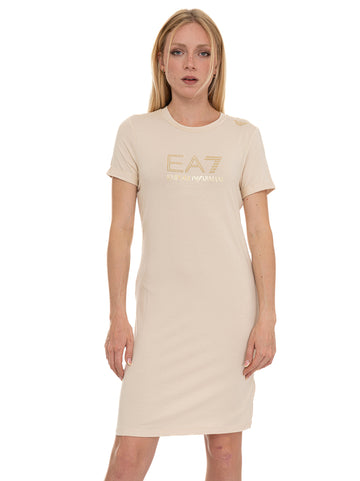 Abito manica corta, girocollo, applicazione borchie, scritta frontale, logo aquila , composizione: 47% modal, 48%...