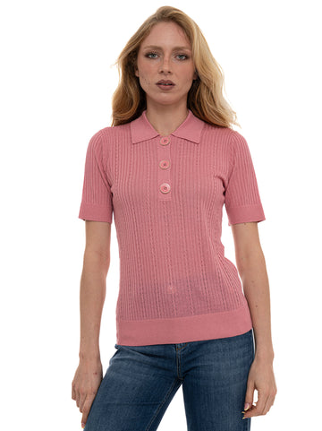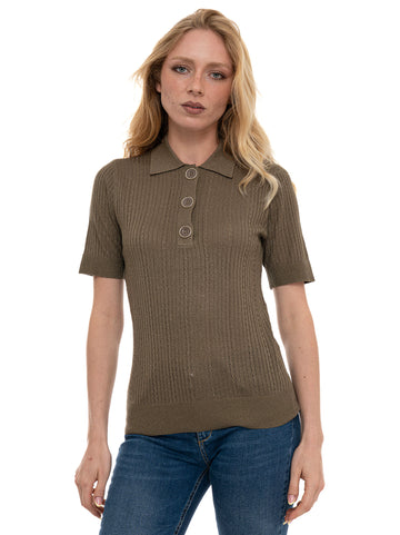 Polo mezza manica, chiusura a 3 bottoni, lavorazione effetto intrecciato, tessuto lurex, composizione: 70% viscosa,...