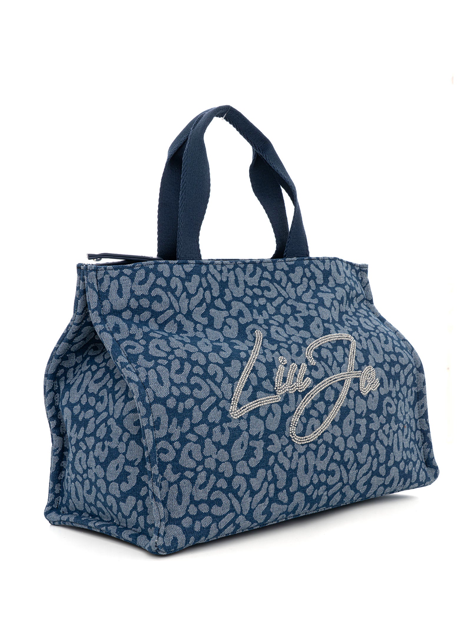 Borsa in tessuto modello shopper, fantasia animalier, tracolla regolabile e removibile in tessuto, logo ricamato sul pannello frontale, chiusura con zip, tasca interna con chiusura lampo, foderata, composizione: 80% cotone, 20% poliestere, interno: 100% poliestere, linea: LIU JO.