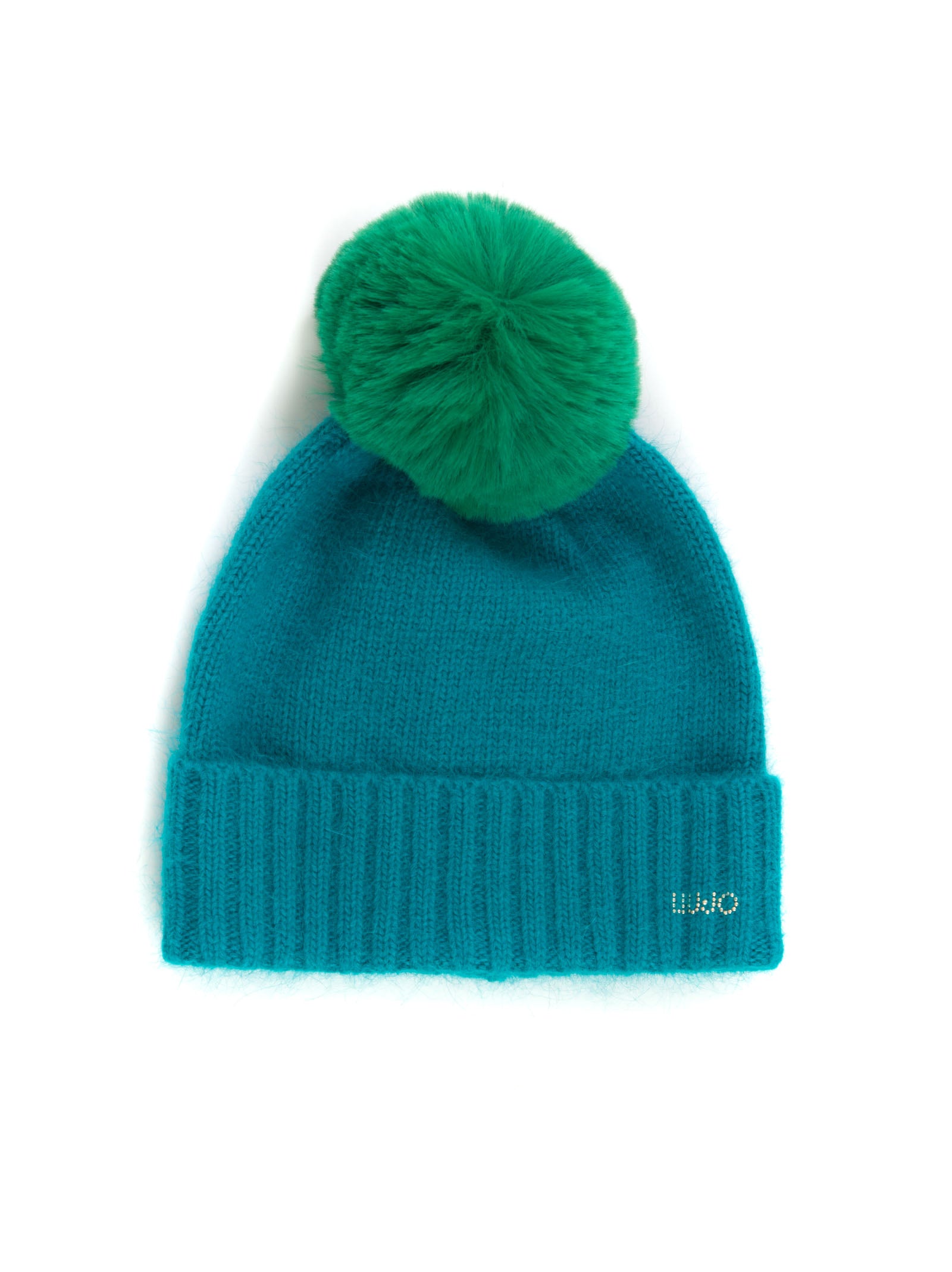 Cappello a coste, pompon, logo piccolo frontale, taglia unica, composizione: 55% poliammide, 20% viscosa, 20% altre fibre, 5% lana, altre fibrelinea: LIU JO.
