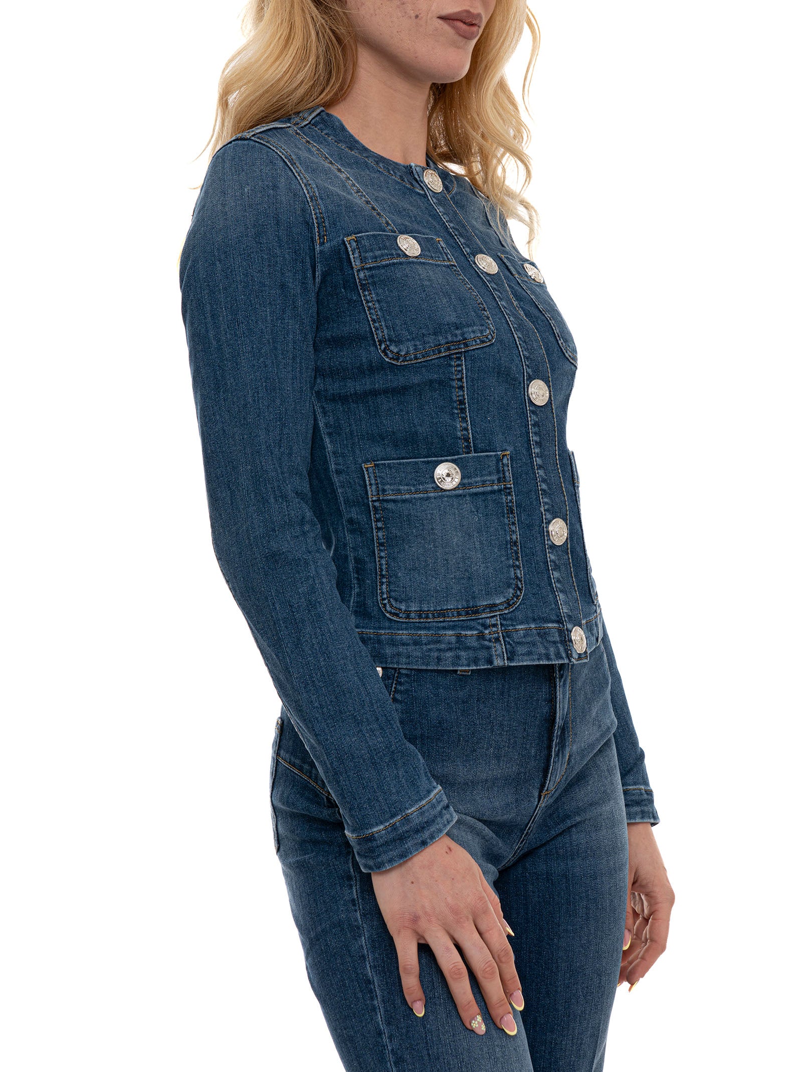 Giubbotto Corto, girocollo, tasche esterne, chiusura con bottoni automatici, composizione: 94% cotone, 5% poliestere, 1% elastan, linea: LIU JO.