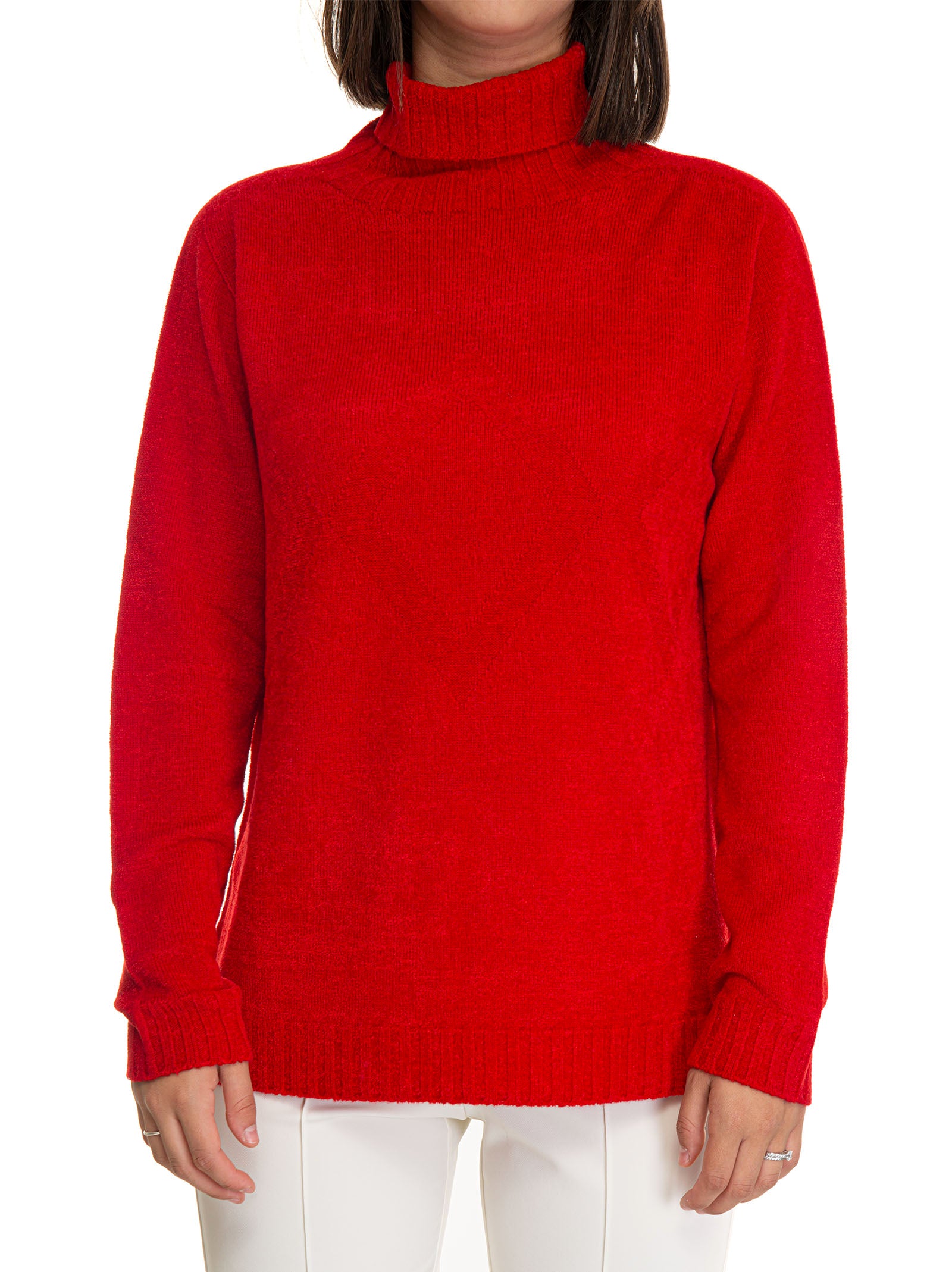 Maglia in lana, tessuto in ciniglia, collo alto, composizione: 50% lana vergine, 27% viscosa, 23% nylon, linea: QUALITY FIRST.