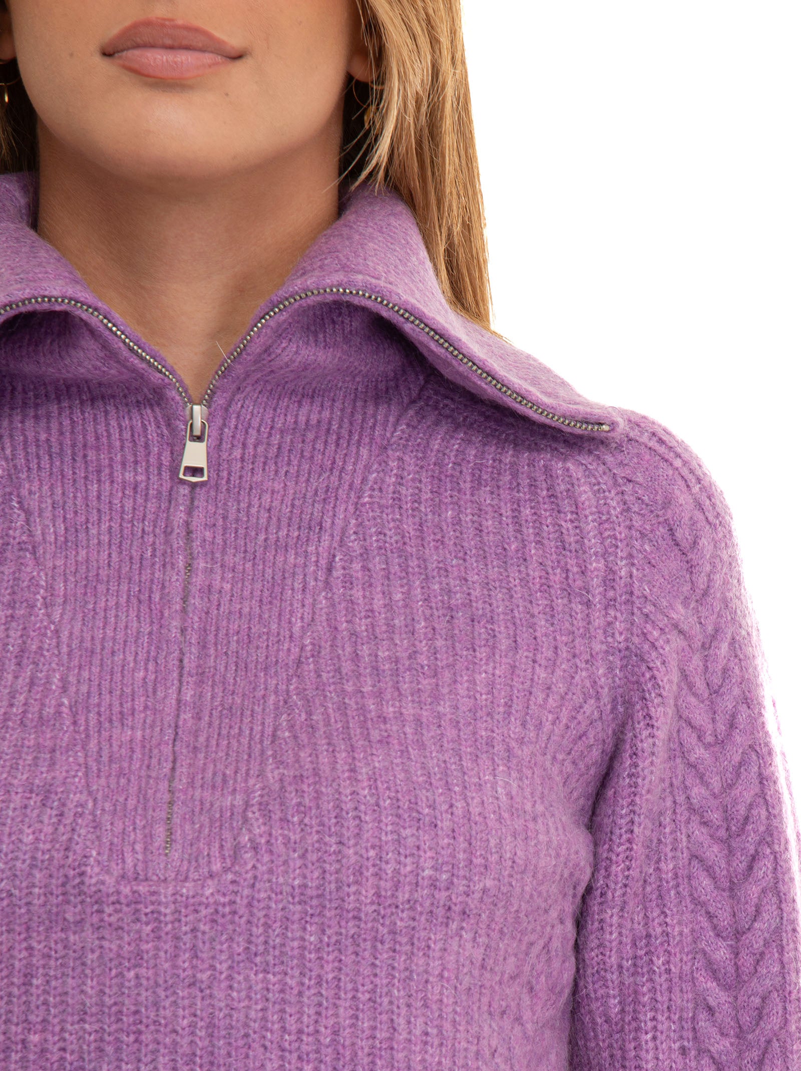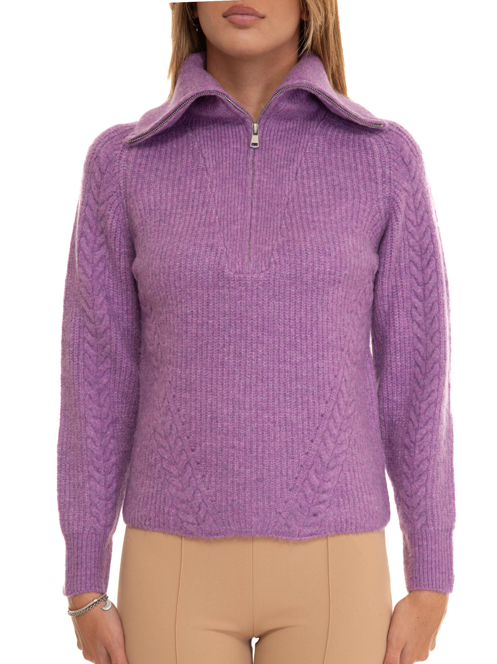 Maglia Suncoo POLDERA, mezza zip, collo a mantellina, manica raglan lunga, lavorazione maglia a treccia, vestibilità comfort, composizione: 53% acrilico, 28% poliammide, 10% lana, 6% mohair, 3% lana, linea: SUNCOO.