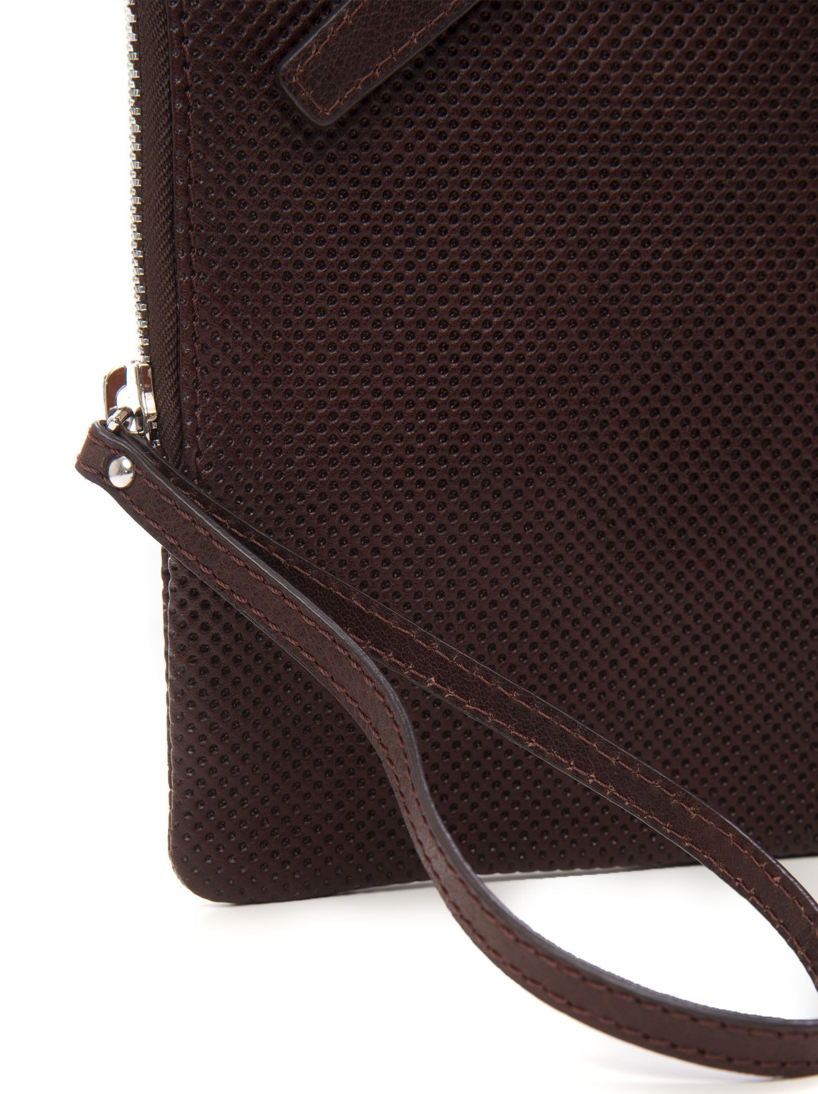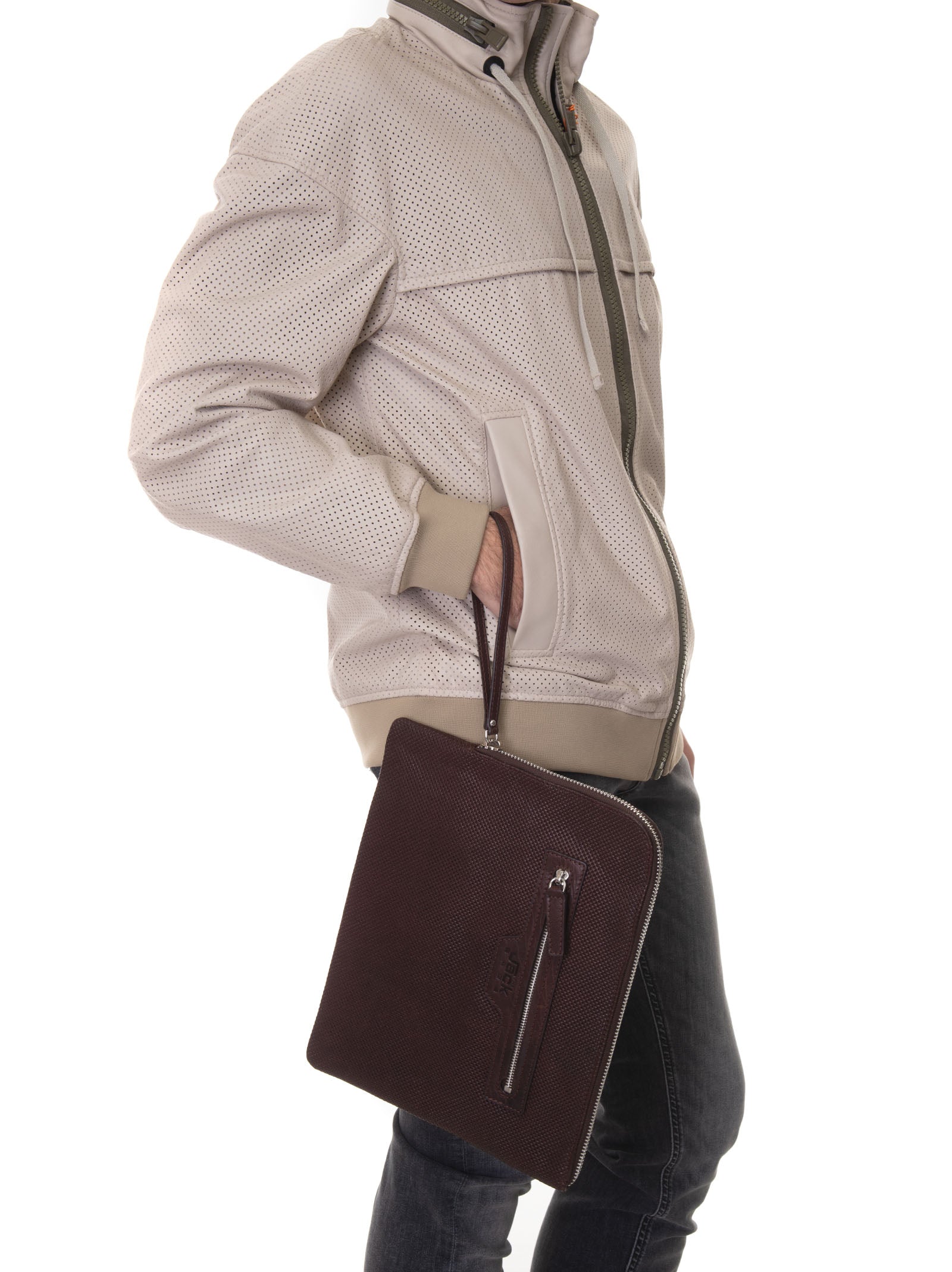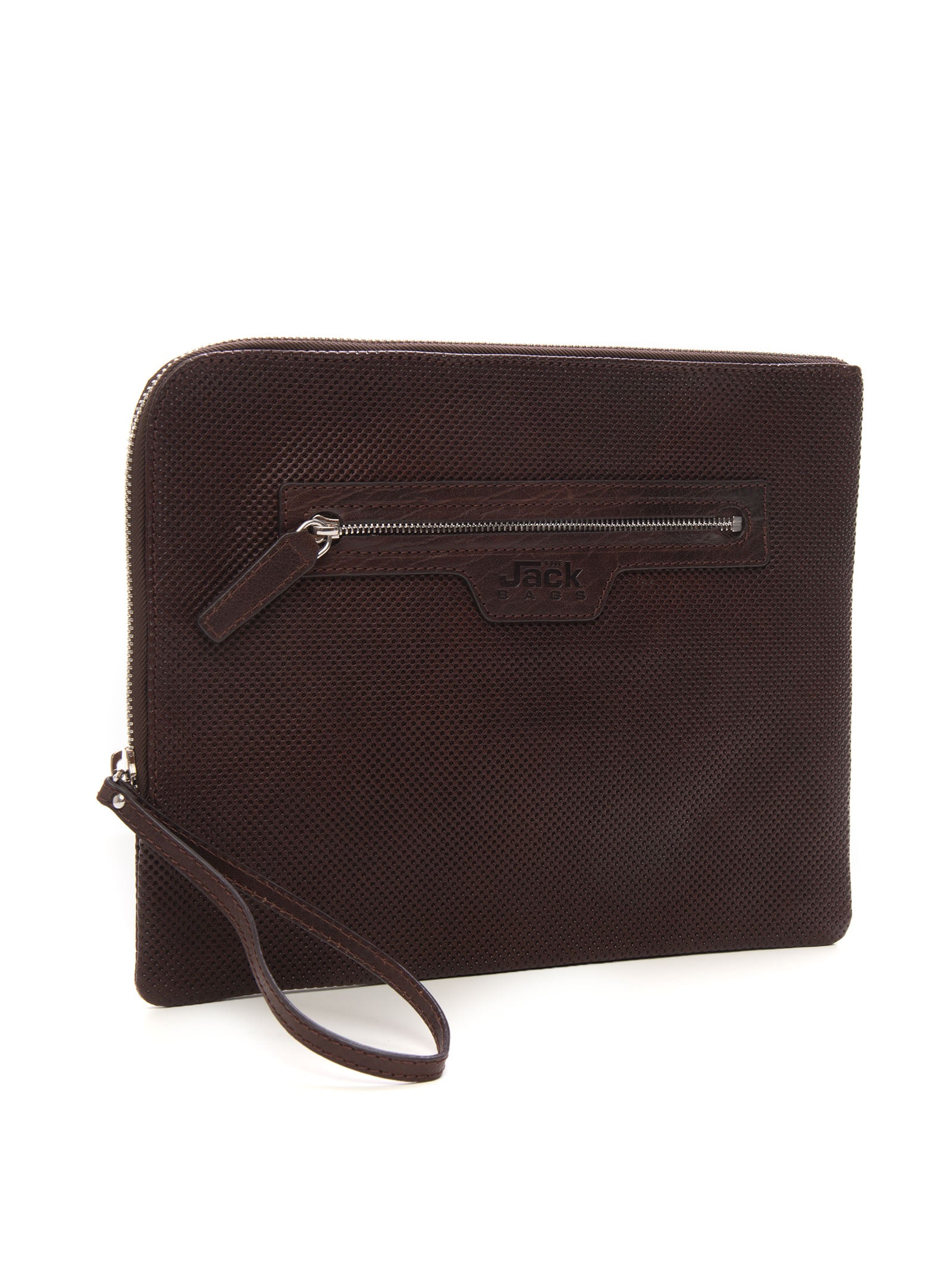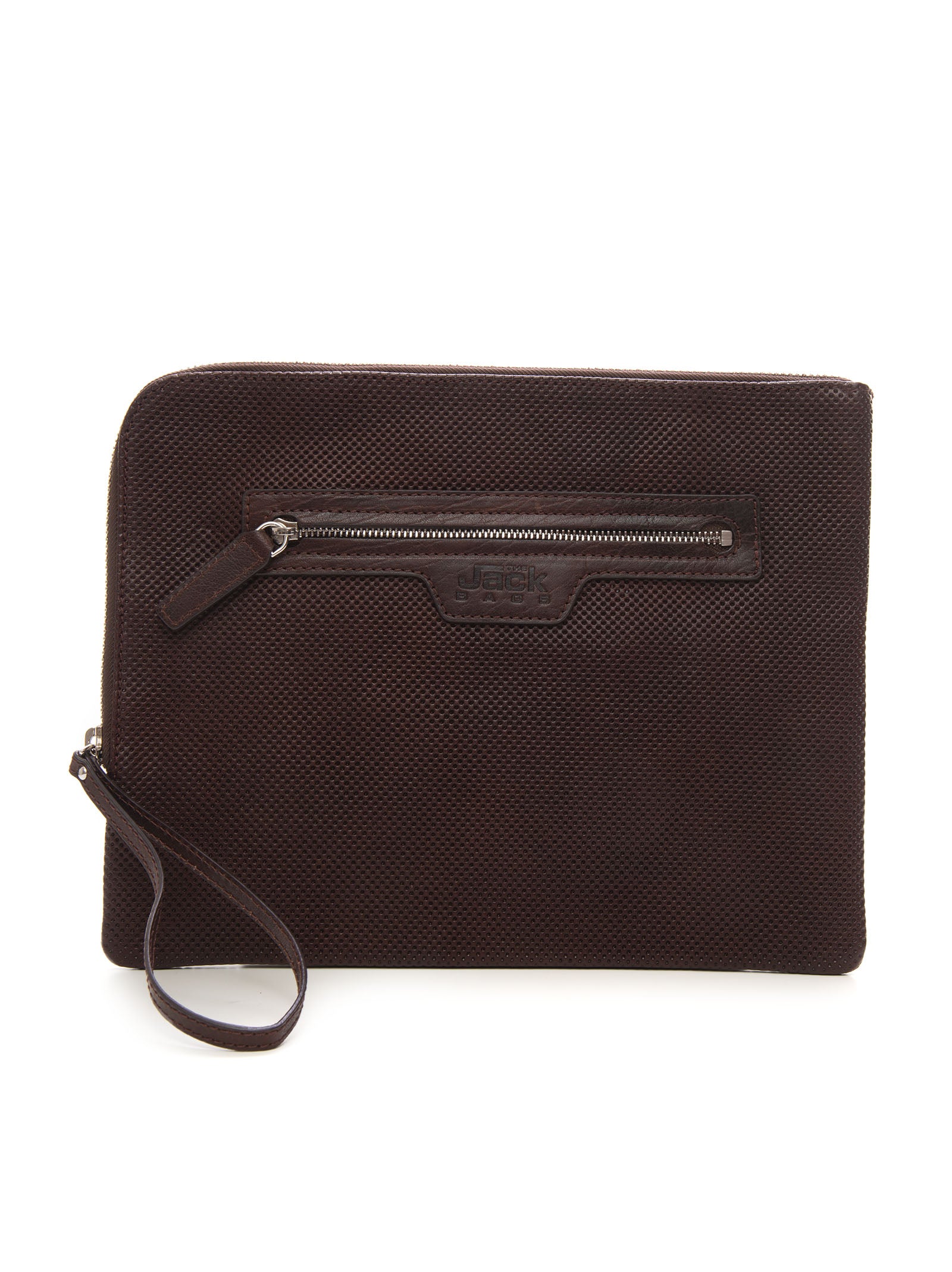 Pochette in pelle The Jack Leathers SAMSARA, lavorazione traforata, chiusura zip, tasca esterna, tasca interna con chiusura lampo, logo anteriore, composizione: 100% pelle, linea: THE JACK LEATHERS.