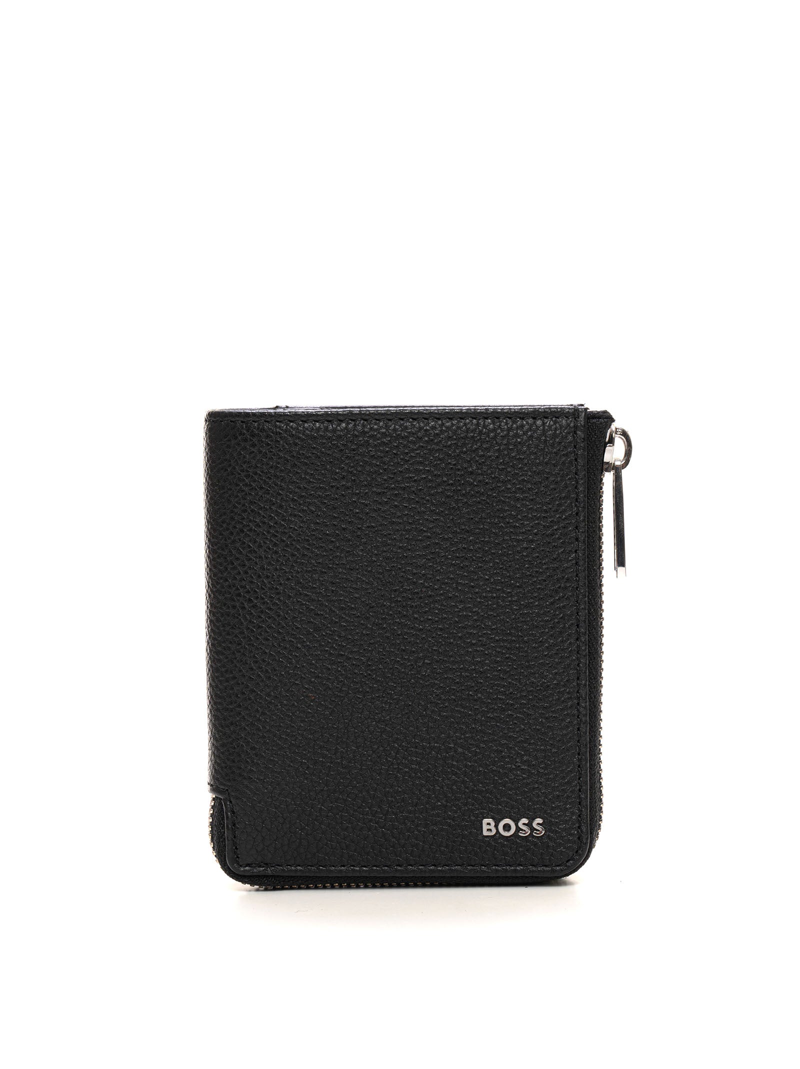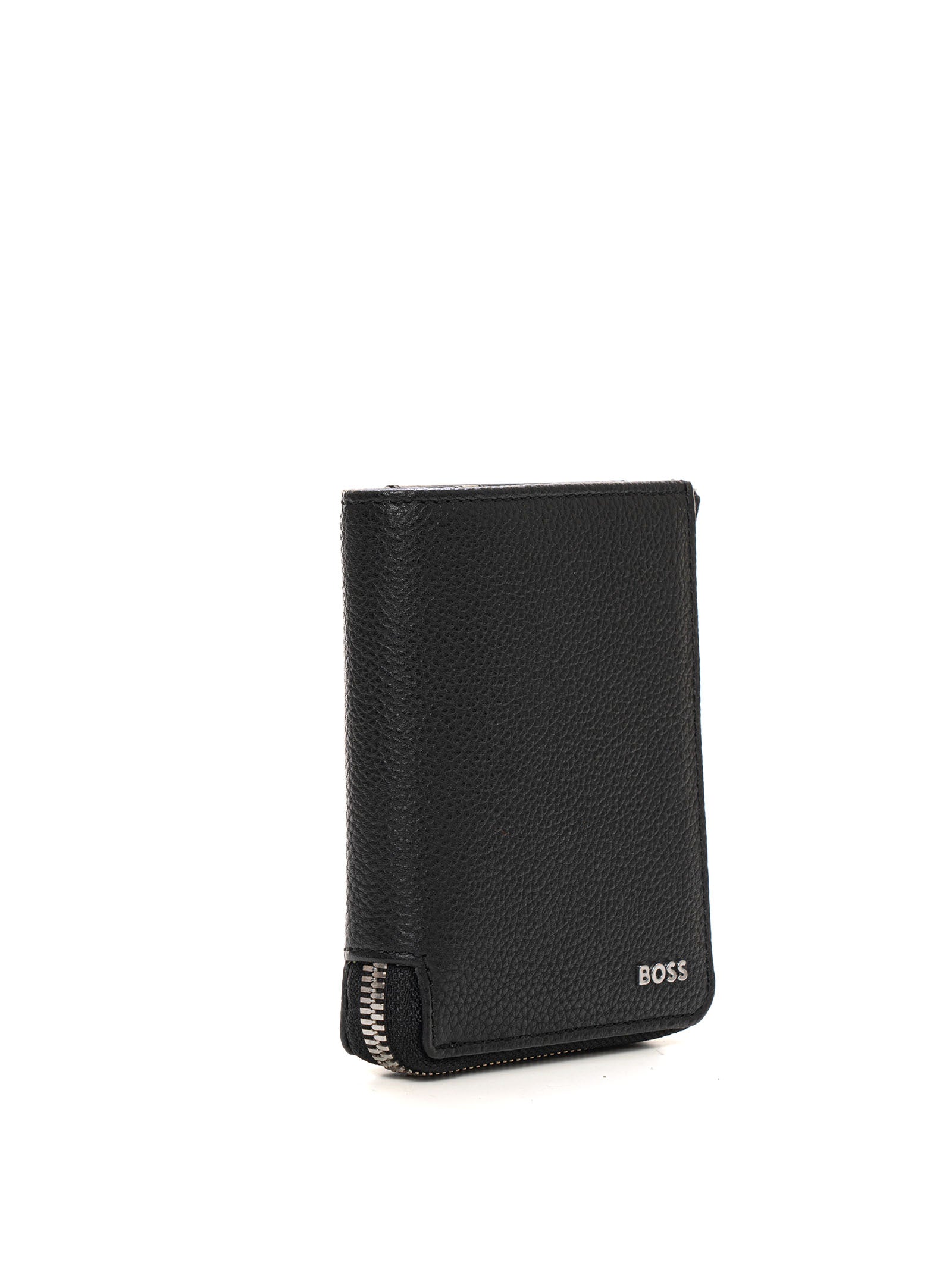Portafoglio verticale, logo laterale, scomparti portacarte, scomparto banconote, chiusura con cerniera, pelle martellata, scomparto portamonete, composizione: 100% pelle, linea: BOSS.