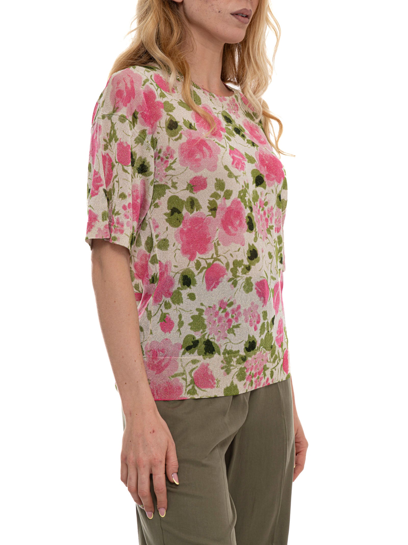 T-shirt, mezza manica, collo morbido, manica scesa, fantasia a fiori, composizione: 91% viscosa, 9% poliestere, linea: LIU JO.