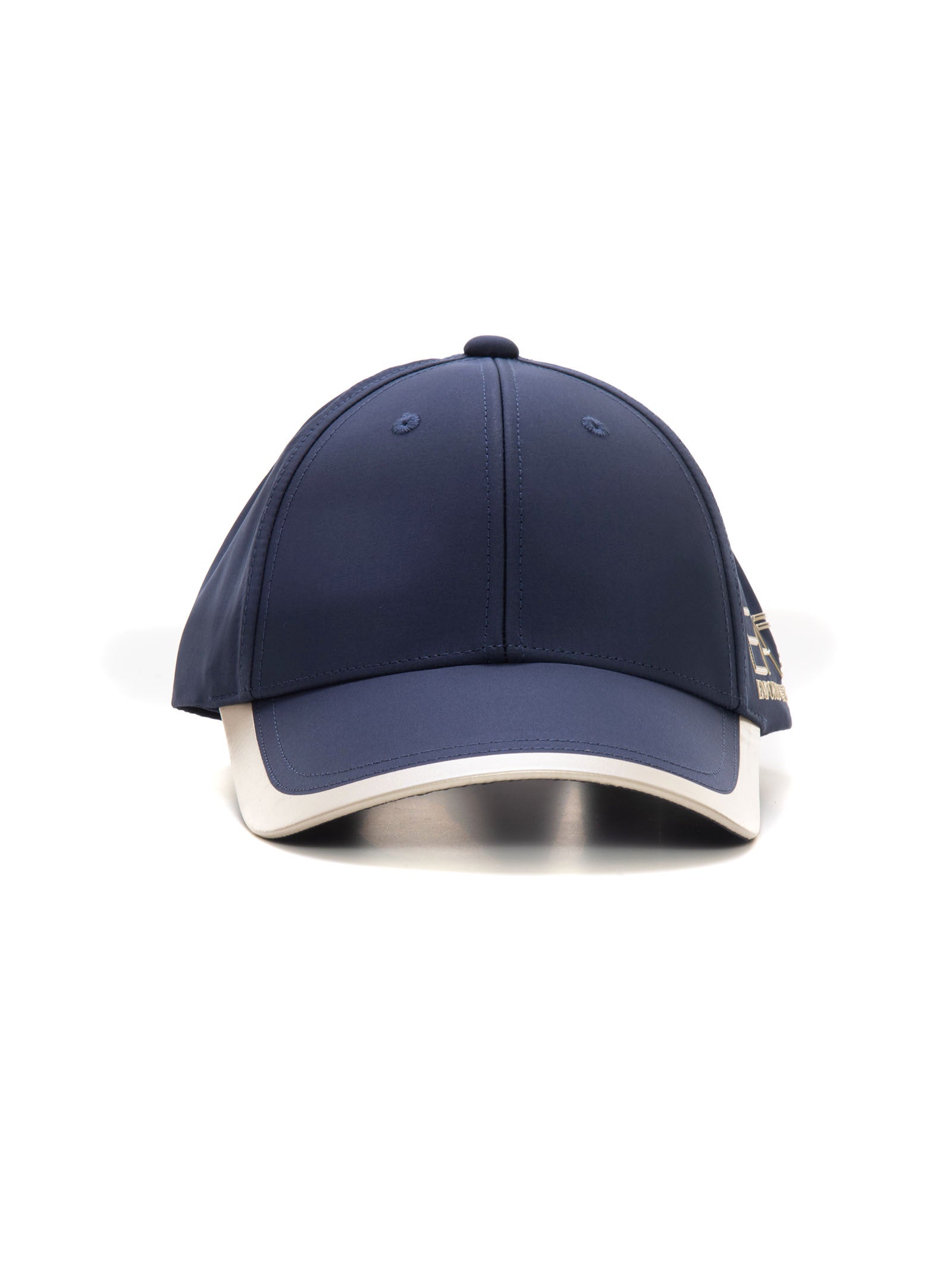 Berretto con visiera, chiusura con cinturino regolabile, logo laterale, profilo in raso, vestibilità regular, composizione: 100% poliestere, linea: EA7.