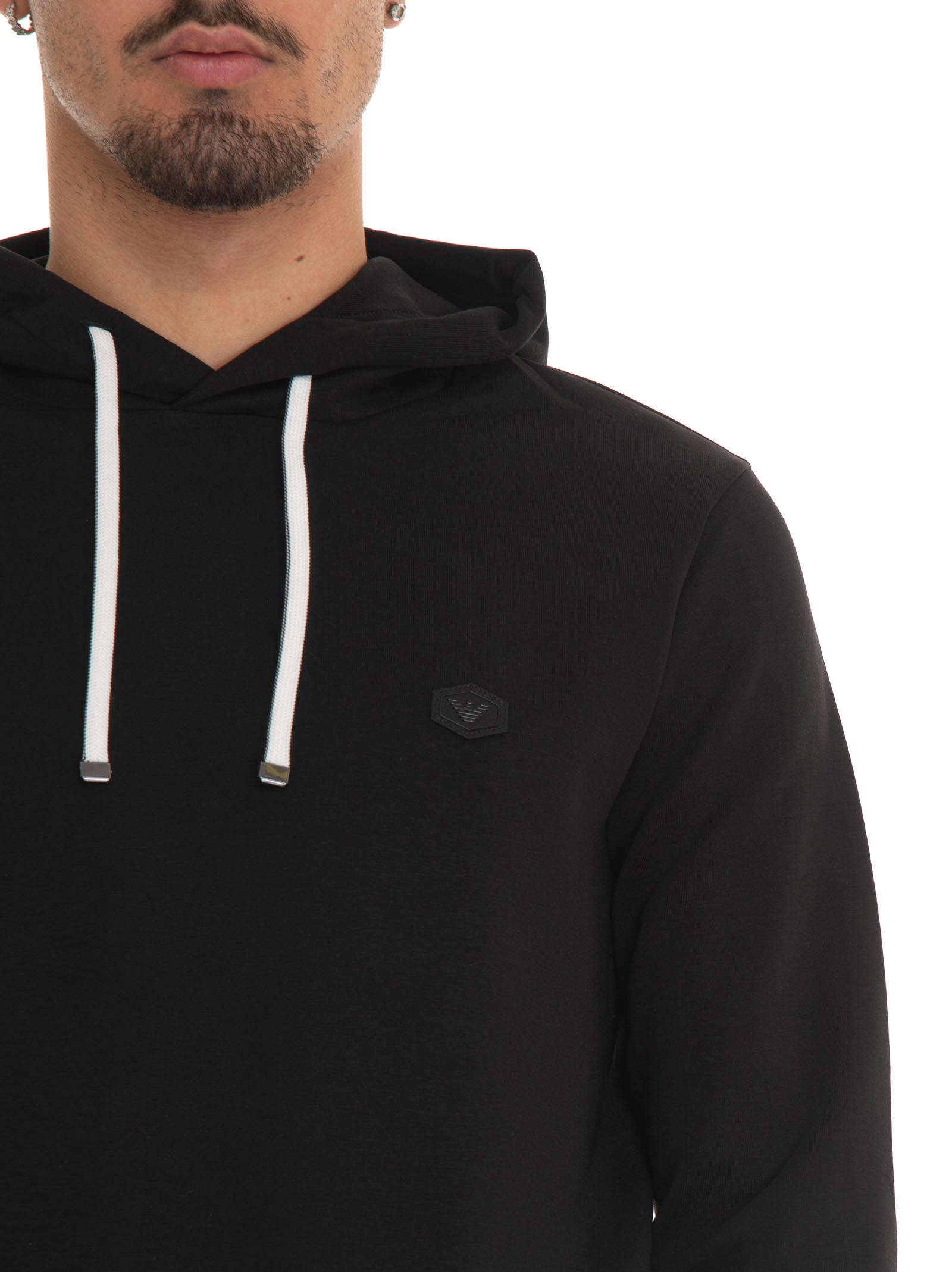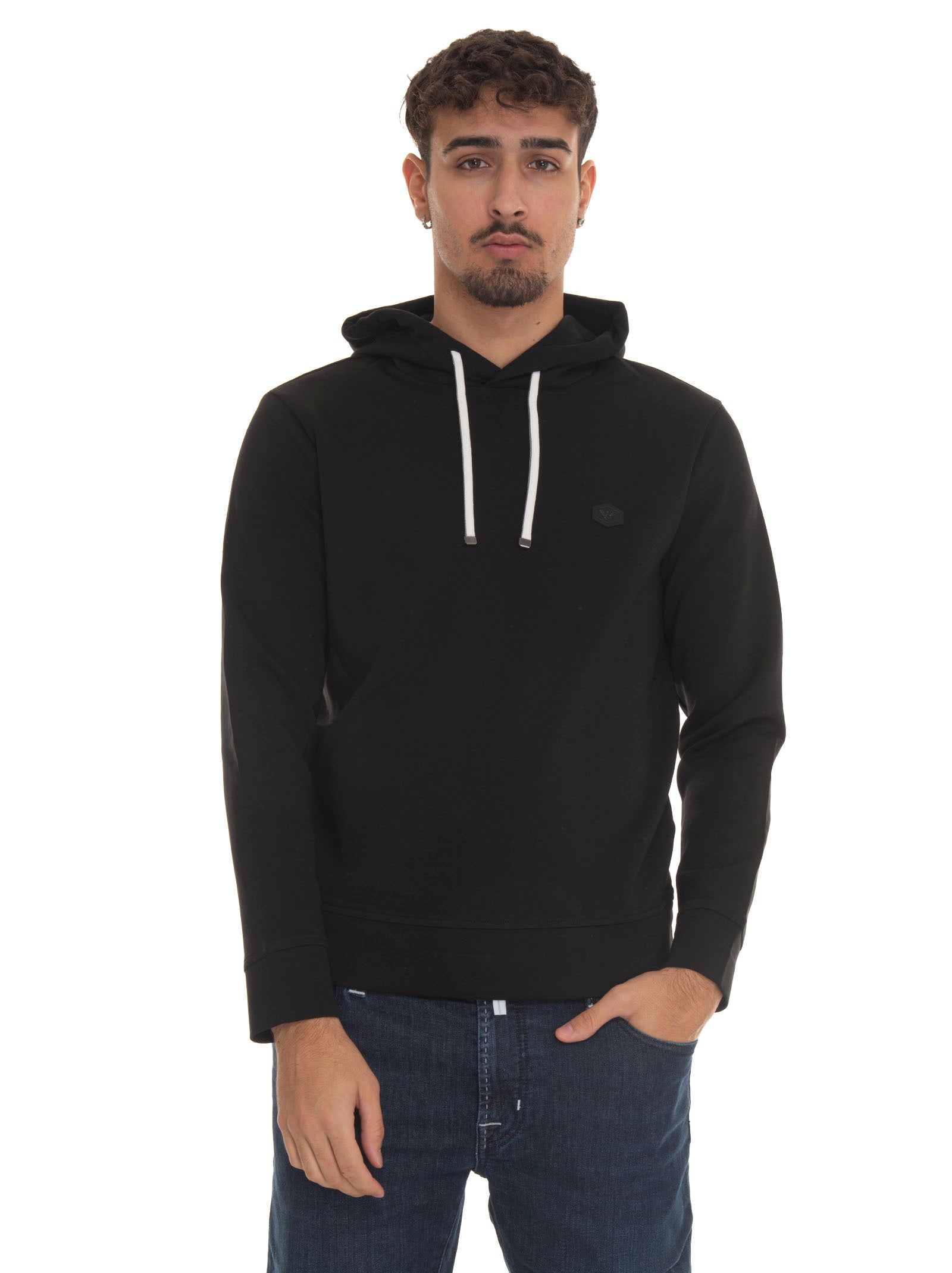 Felpa girocollo, logo sul petto, tinta unita, tessuto morbido, composizione: 76% cotone, 18% poliestere, 6% elastan, linea: EMPORIO ARMANI.