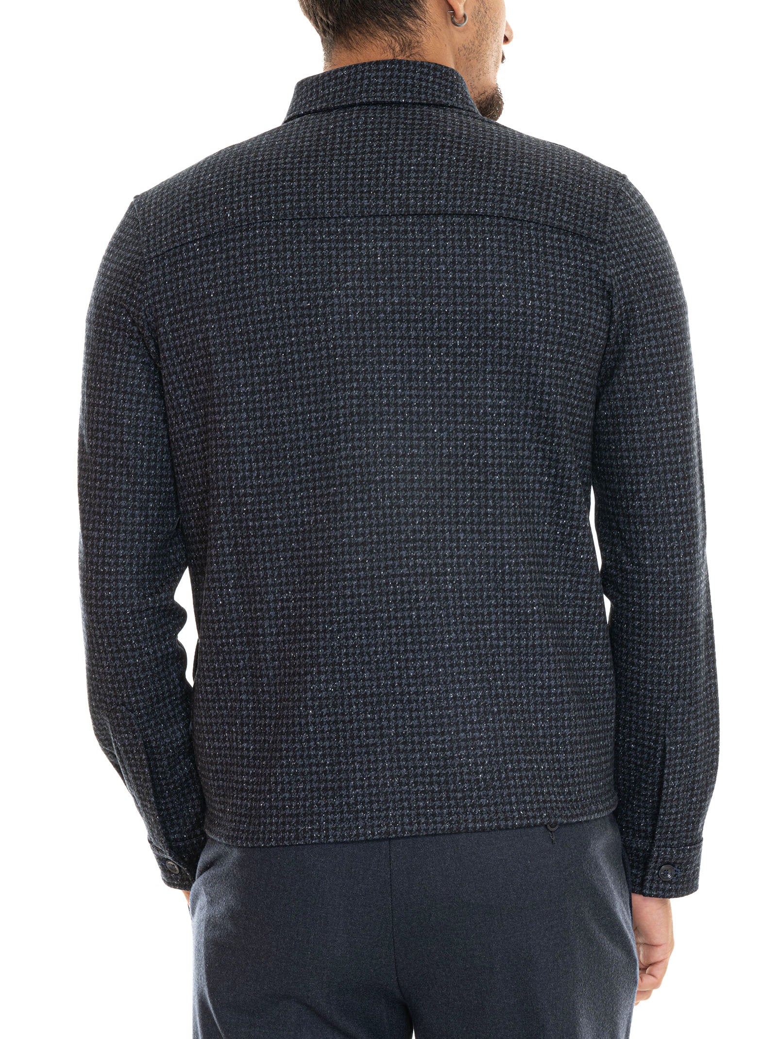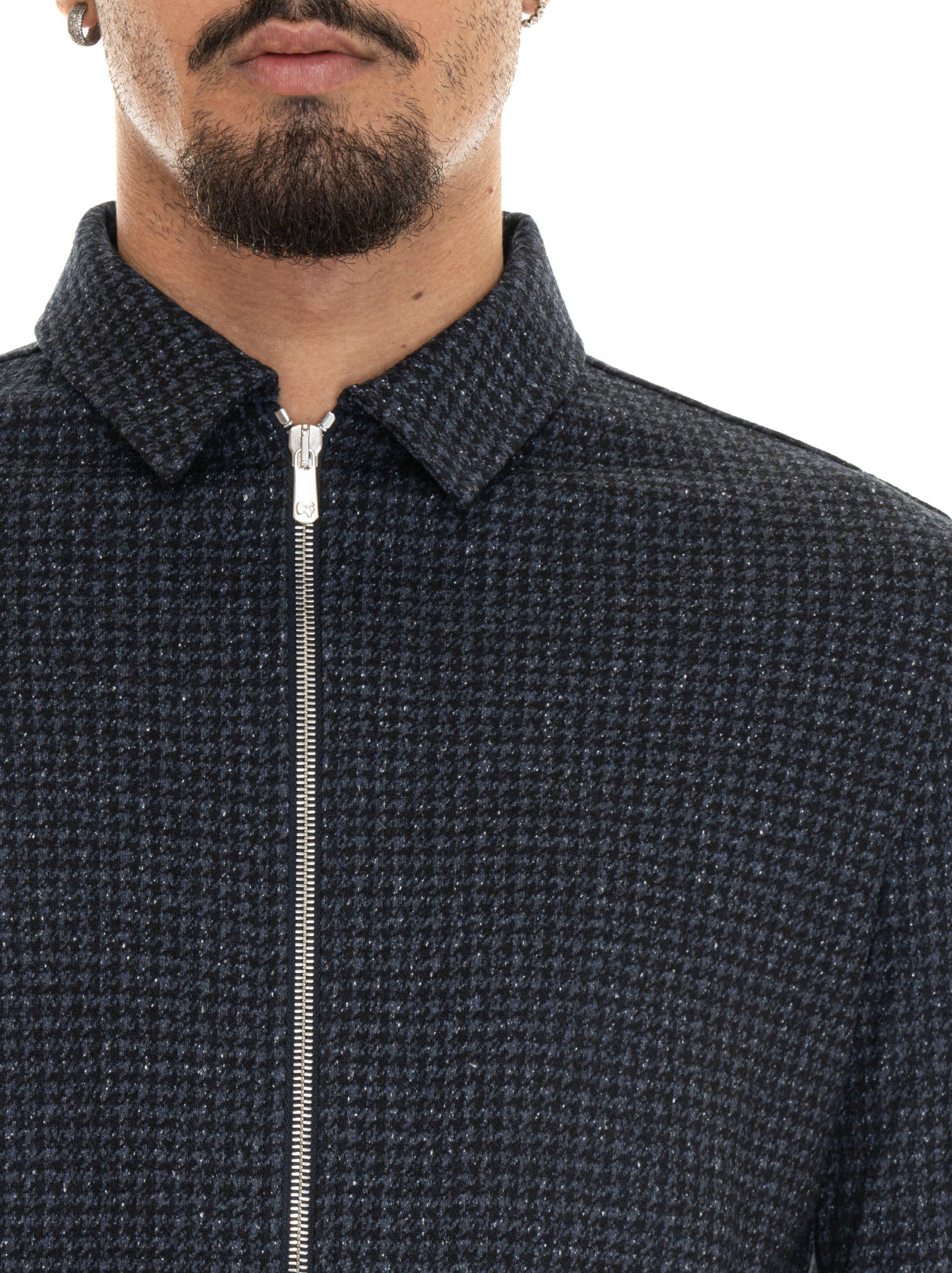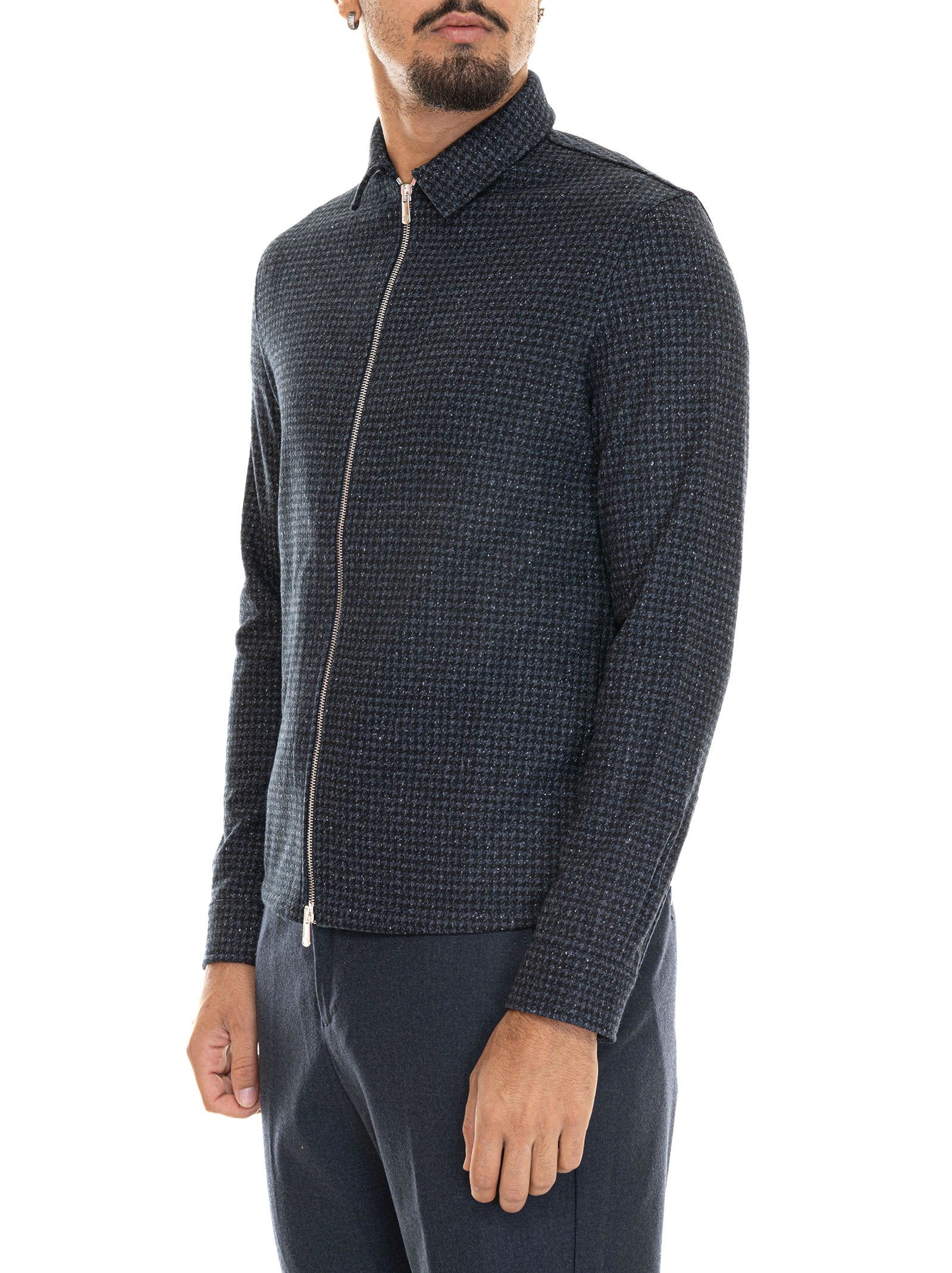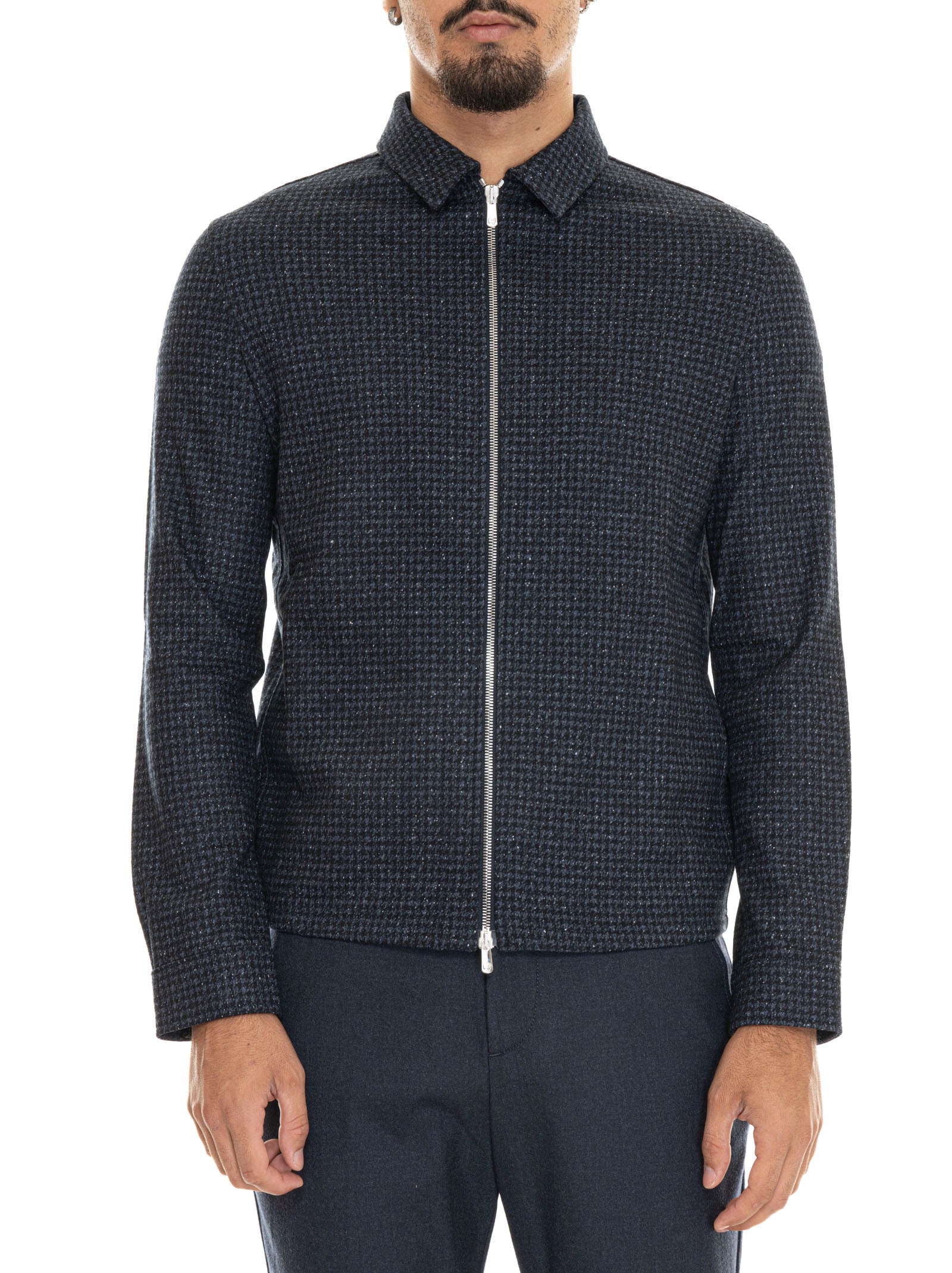 Giubbino corto Marco Pescarolo AVI, zip con doppio cursore, fantasia pied de poule, 2 tasche diagonali, collo camicia, polsino con bottone, composizione: 60% lana, 40% seta, interno: 100% cotone, linea: MARCO PESCAROLO.