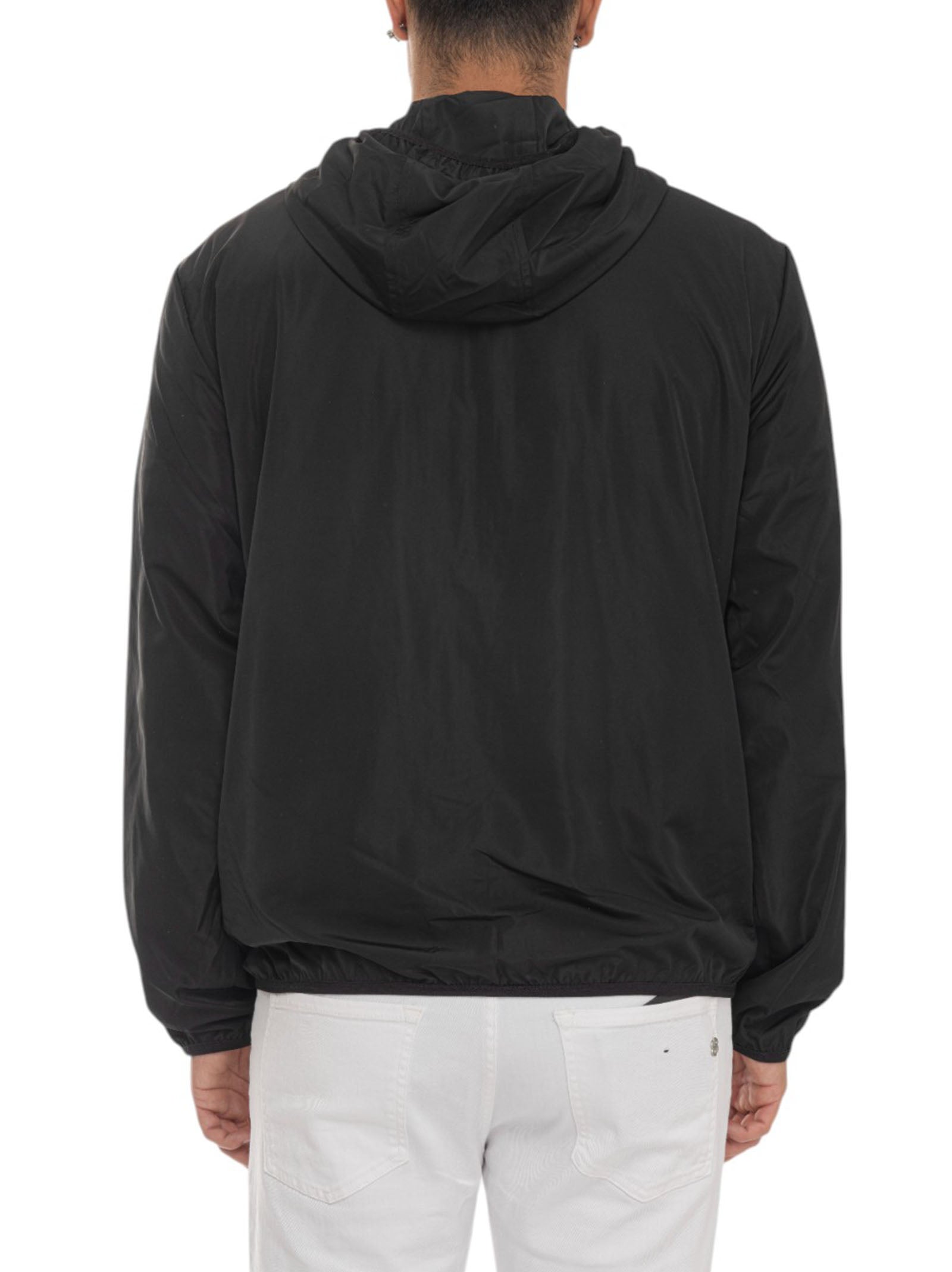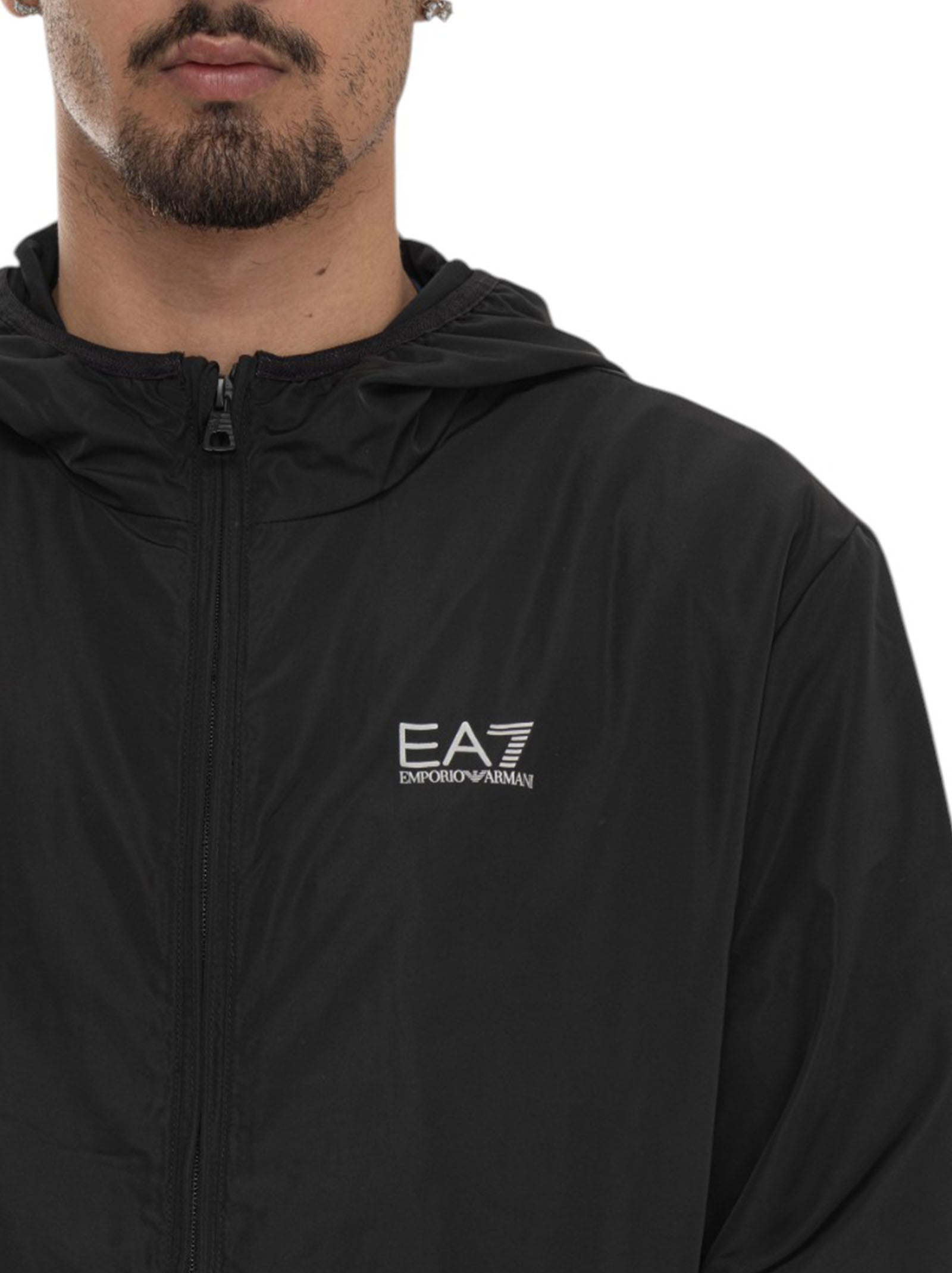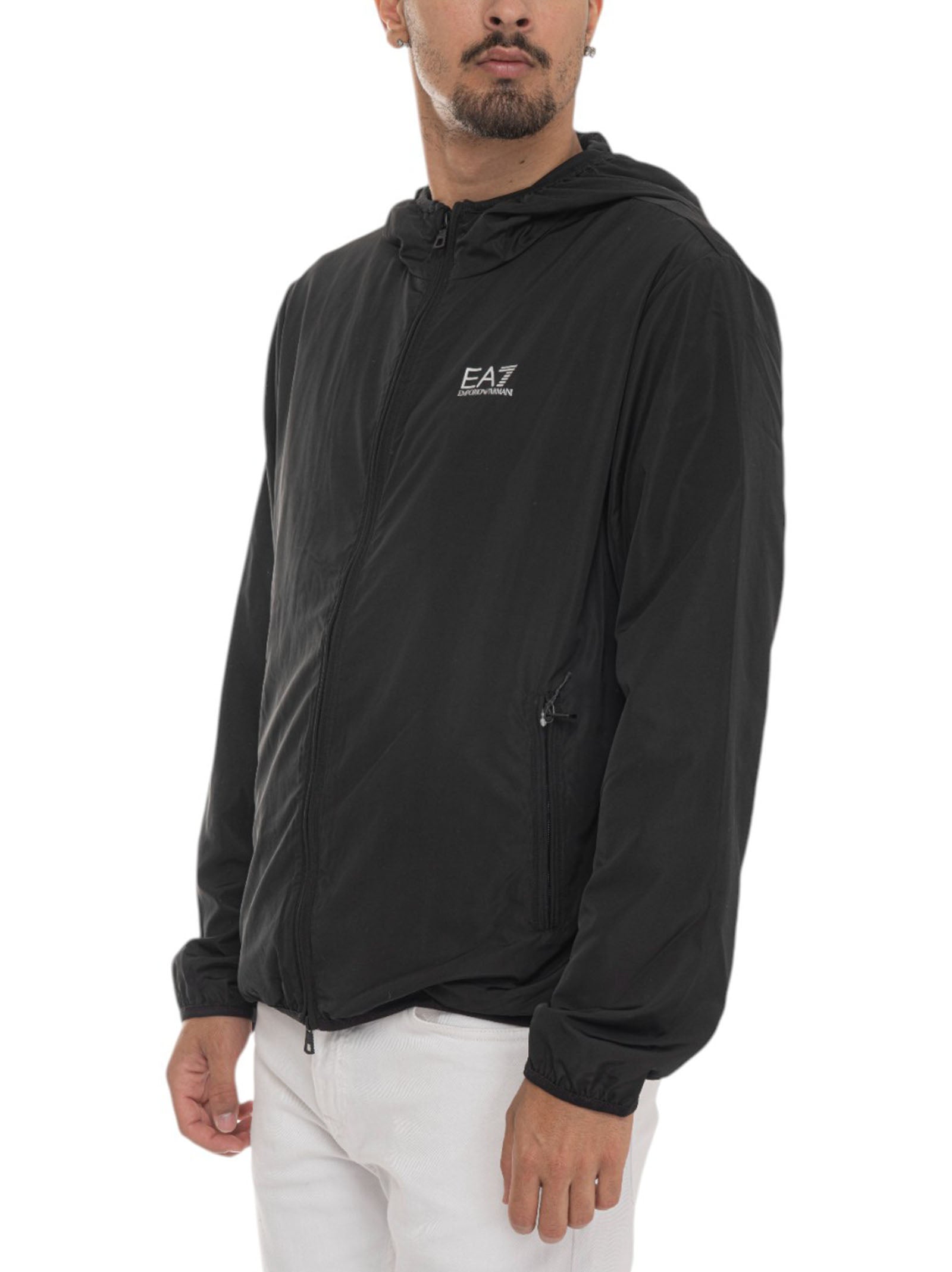 Giubbino K-way, con cappuccio, chiusura con cerniera, tasca laterale con zip, logo laterale, dettagli a contrasto di colore, composizione: 100% poliestere, linea: EA7.
