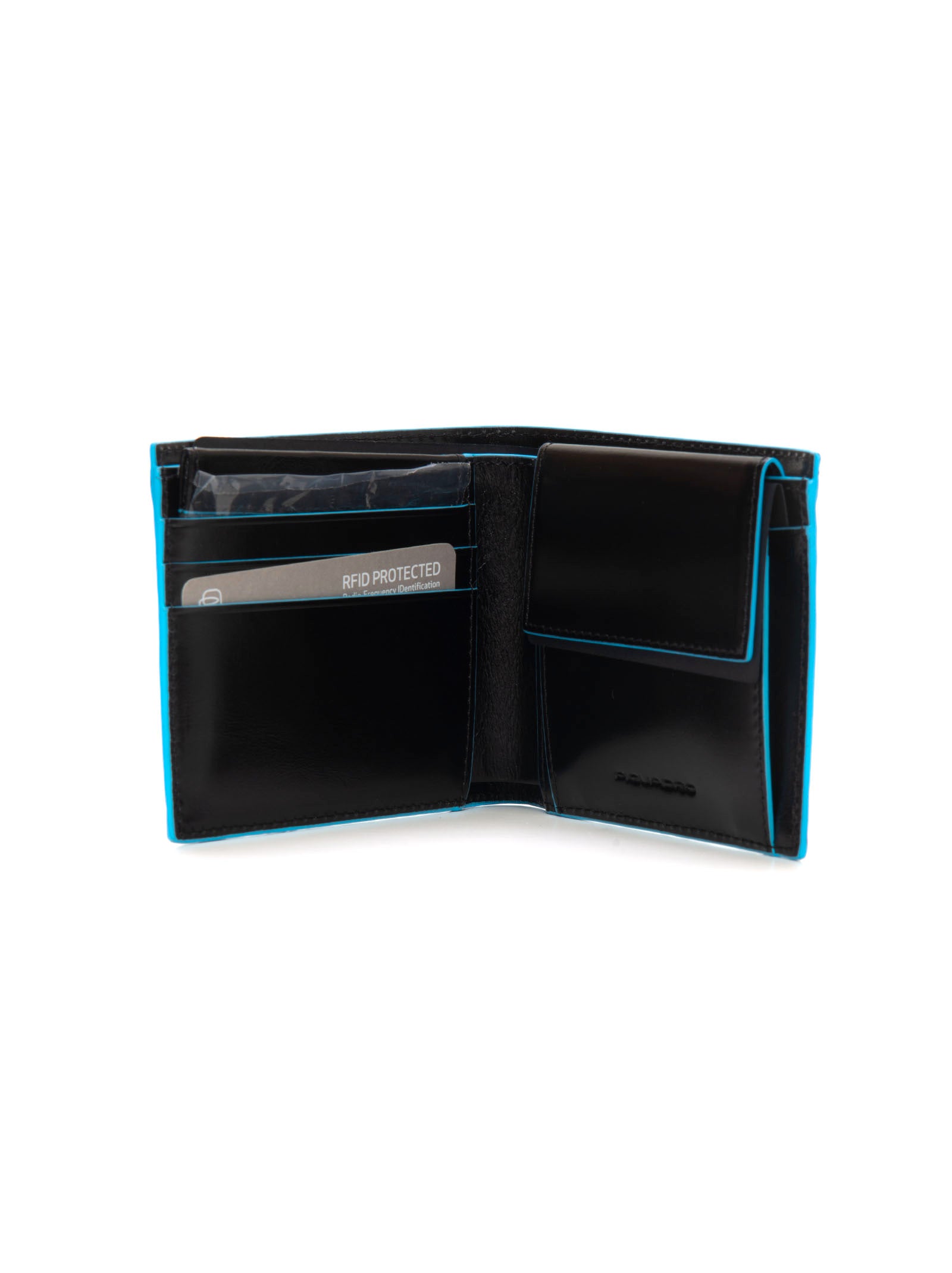 Portafoglio, scomparto banconote, scomparti portacarte, scomparto portamonete, profili in contrasto, logo in acciaio cromato, composizione: 100% pelle, linea: PIQUADRO.