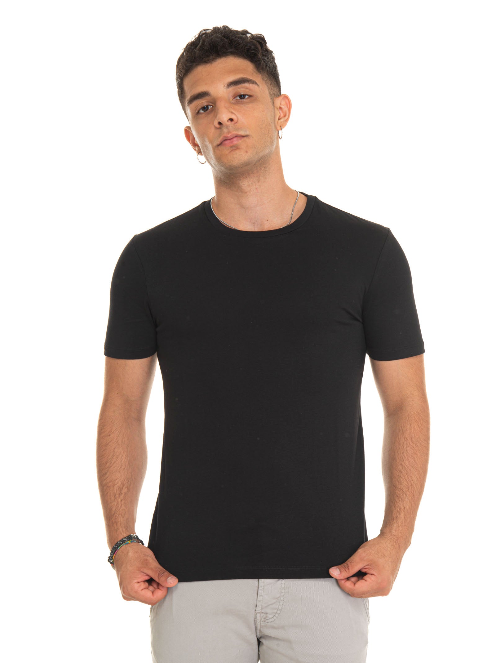 T-shirt girocollo mezza manica Nero BOSS Uomo