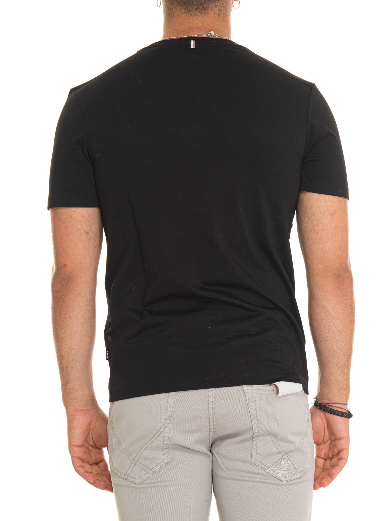 T-shirt girocollo mezza manica, logo dietro al collo, tinta unita, tessuto ultra-leggero, logo cucito sul fondo, composizione: 100% cotone, linea: BOSS.
